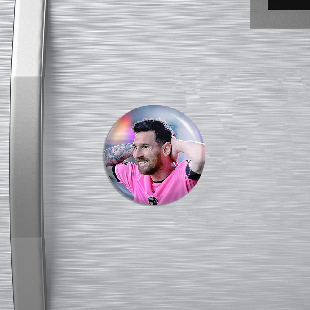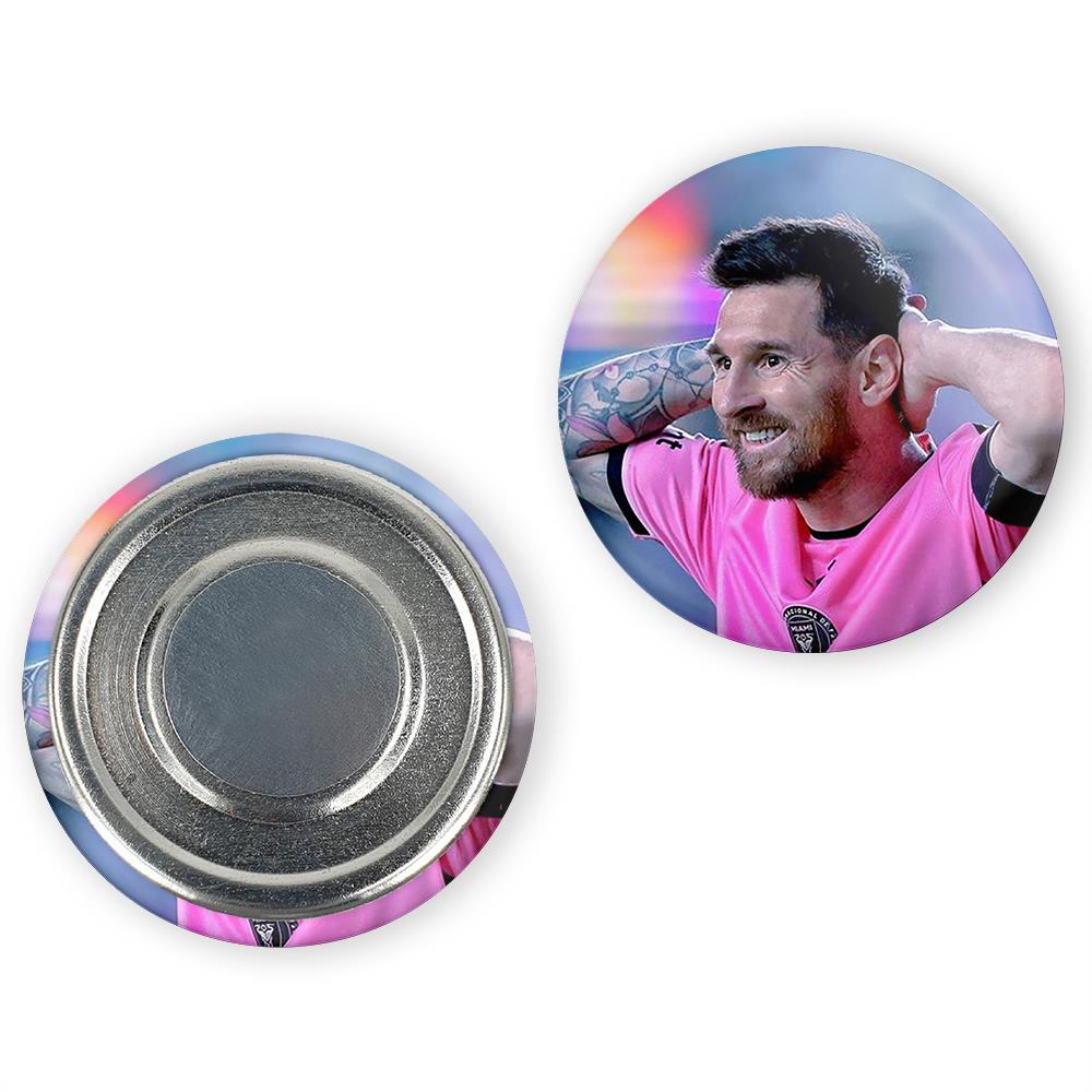 مگنت لیونل مسی خندالو با روکش سلفون مات مخملی ضدخش و قطعه پشتی فلزی تولید شده است که آهنربای اتمی بکار برده شده در محصول، بصورت مخفی تعبیه شده ودیده نمی شود. ضمن اینکه گیرایی بسیار بالایی داشته و به هیچ عنوان از روی یخچال نمی افتد.