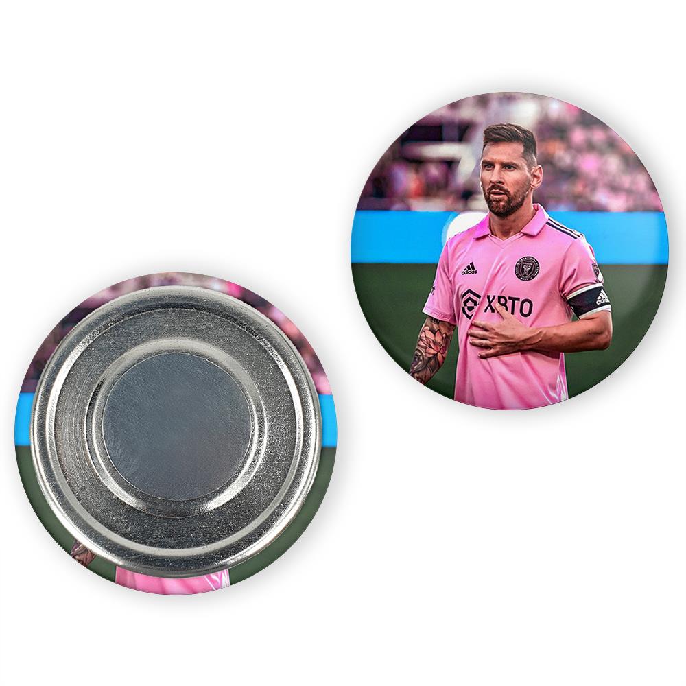 مگنت لیونل مسی خندالو با روکش سلفون مات مخملی ضدخش و قطعه پشتی فلزی تولید شده است که آهنربای اتمی بکار برده شده در محصول، بصورت مخفی تعبیه شده ودیده نمی شود. ضمن اینکه گیرایی بسیار بالایی داشته و به هیچ عنوان از روی یخچال نمی افتد.