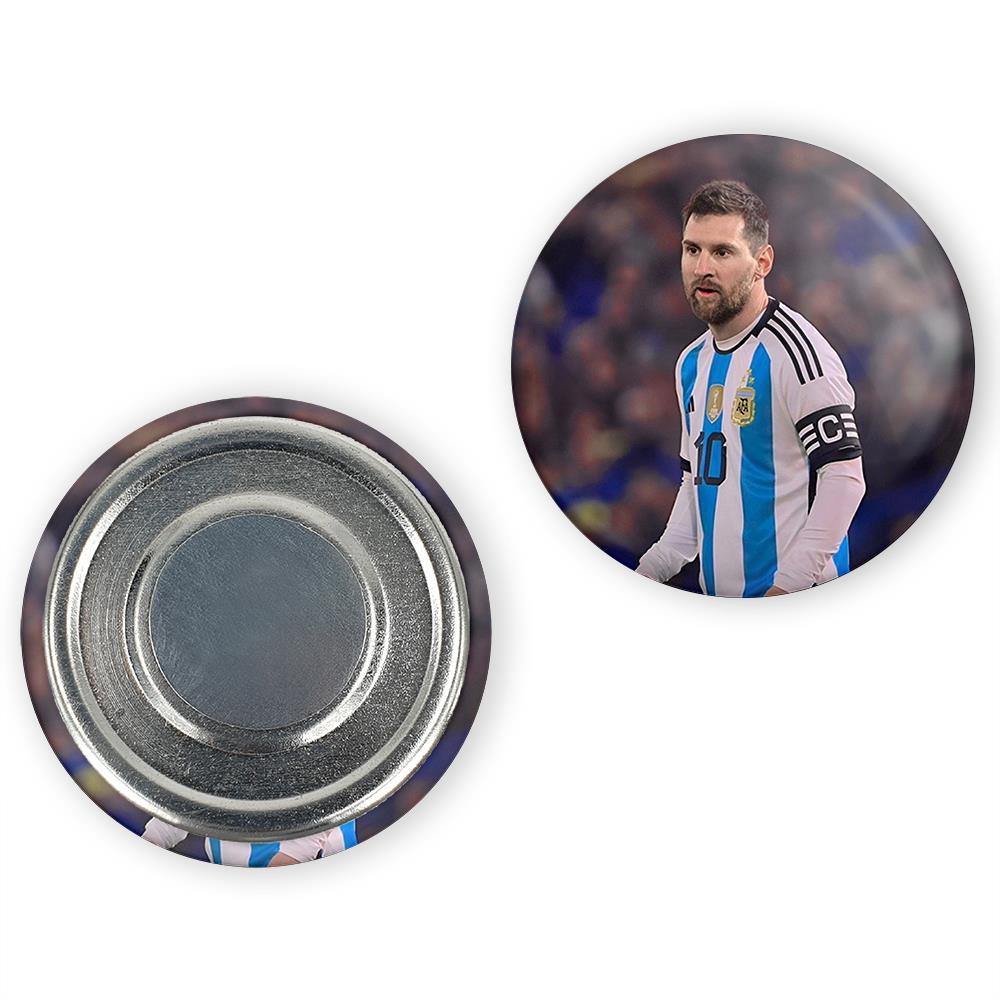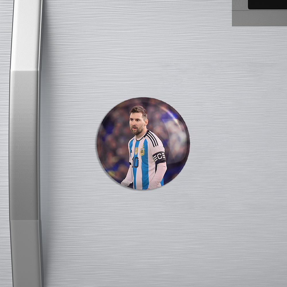 مگنت لیونل مسی خندالو با روکش سلفون مات مخملی ضدخش و قطعه پشتی فلزی تولید شده است که آهنربای اتمی بکار برده شده در محصول، بصورت مخفی تعبیه شده ودیده نمی شود. ضمن اینکه گیرایی بسیار بالایی داشته و به هیچ عنوان از روی یخچال نمی افتد.