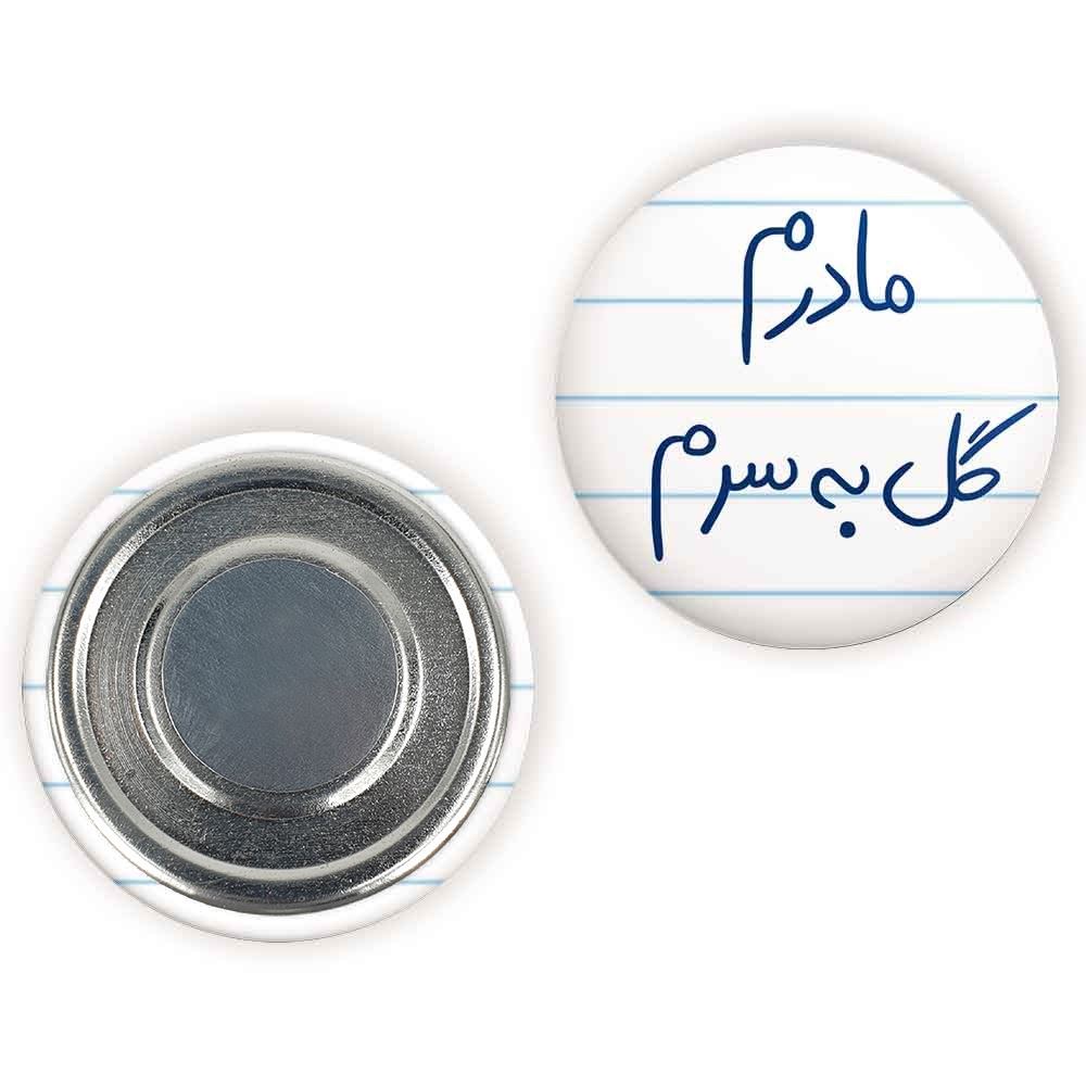مگنت مادرم گل به سرم خندالو با روکش سلفون مات مخملی ضدخش و قطعه پشتی فلزی تولید شده است که آهنربای اتمی بکار برده شده در محصول، بصورت مخفی تعبیه شده ودیده نمی شود. ضمن اینکه گیرایی بسیار بالایی داشته و به هیچ عنوان از روی یخچال نمی افتد.