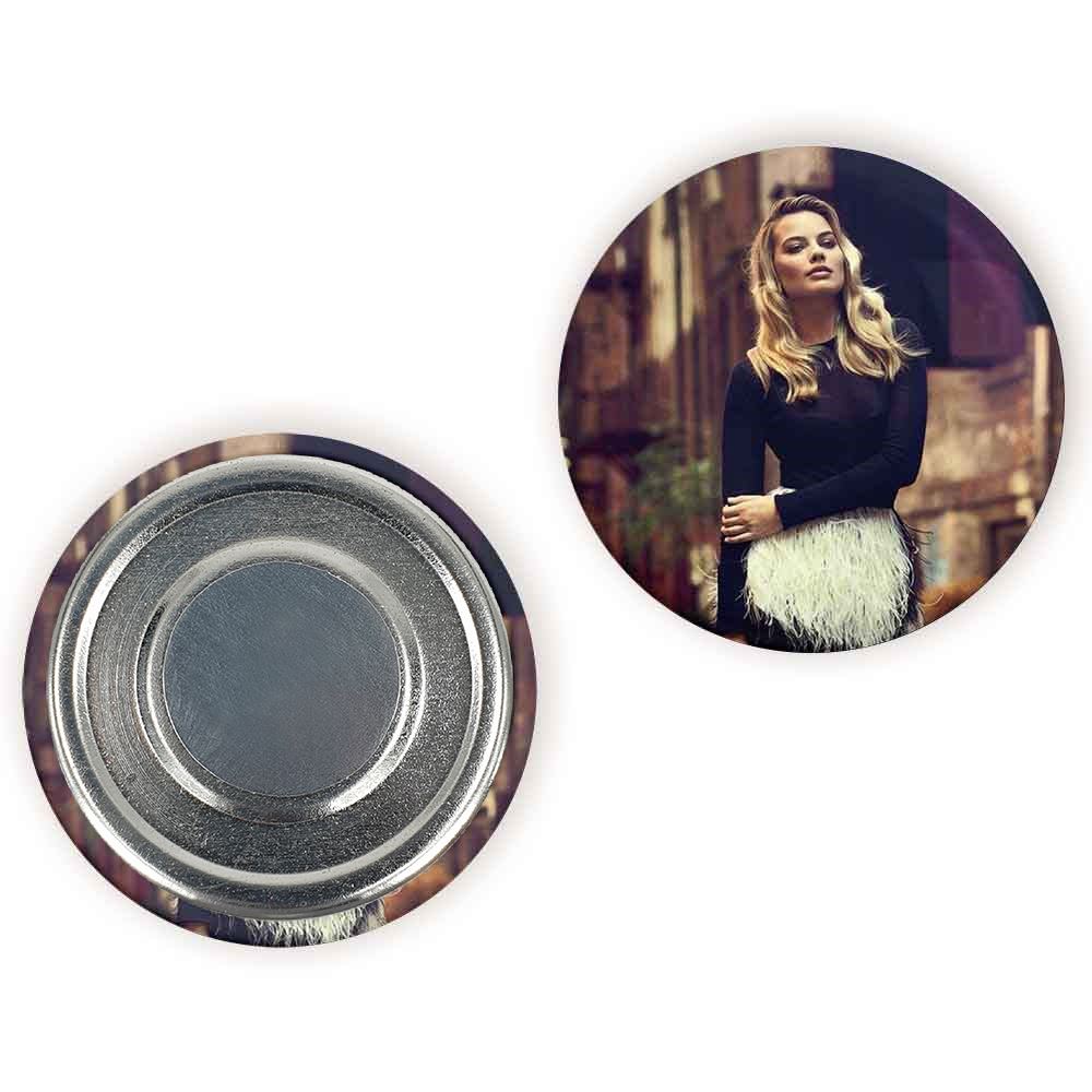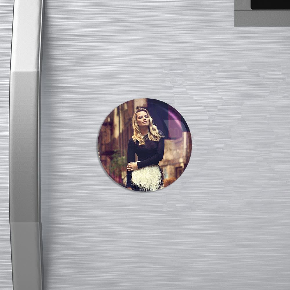 مگنت مارگو رابی Margot Robbie خندالو با روکش سلفون مات مخملی ضدخش و قطعه پشتی فلزی تولید شده است که آهنربای اتمی بکار برده شده در محصول، بصورت مخفی تعبیه شده ودیده نمی شود. ضمن اینکه گیرایی بسیار بالایی داشته و به هیچ عنوان از روی یخچال نمی افتد.