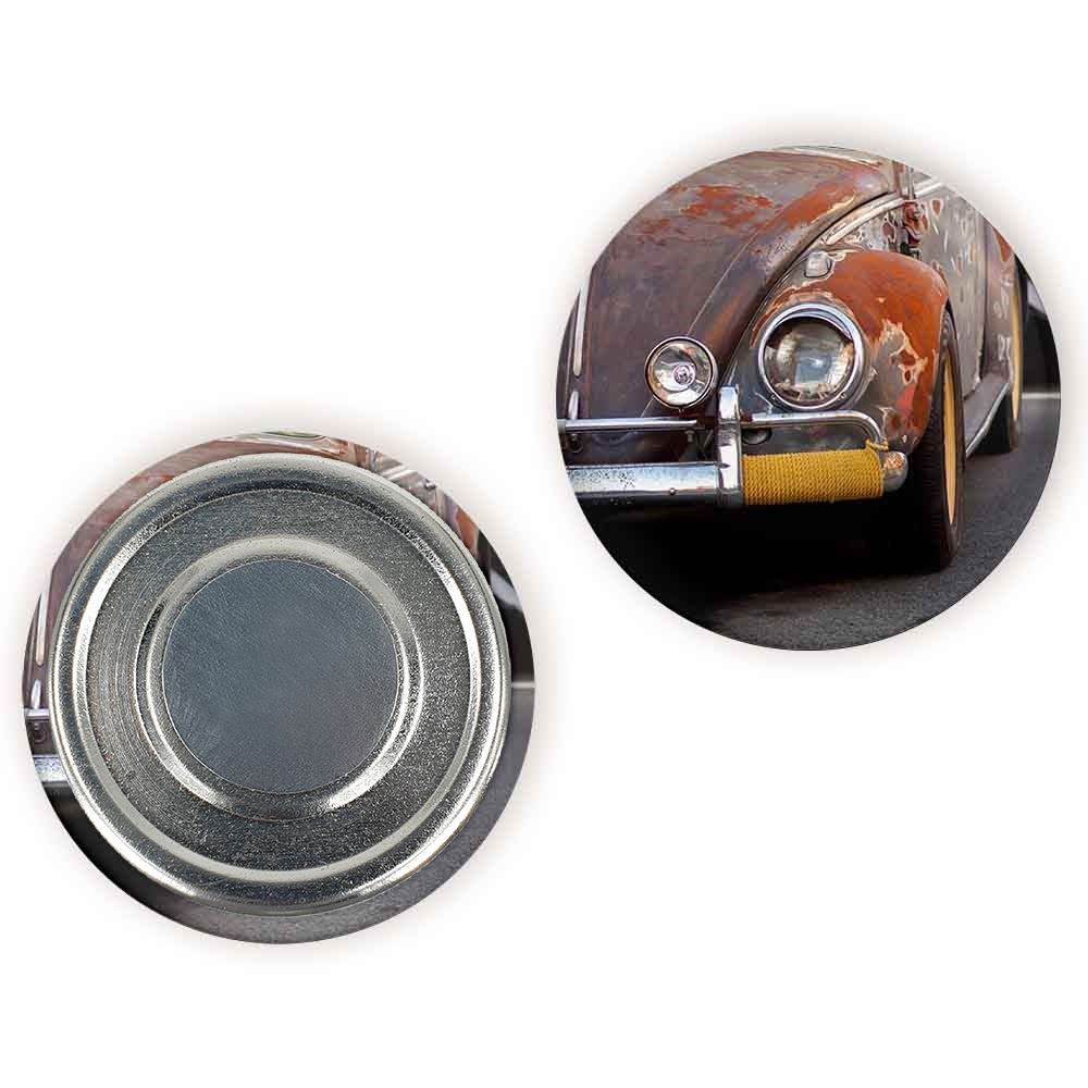 مگنت ماشین کلاسیک خندالو با روکش سلفون مات مخملی ضدخش و قطعه پشتی فلزی تولید شده است که آهنربای اتمی بکار برده شده در محصول، بصورت مخفی تعبیه شده ودیده نمی شود. ضمن اینکه گیرایی بسیار بالایی داشته و به هیچ عنوان از روی یخچال نمی افتد.
