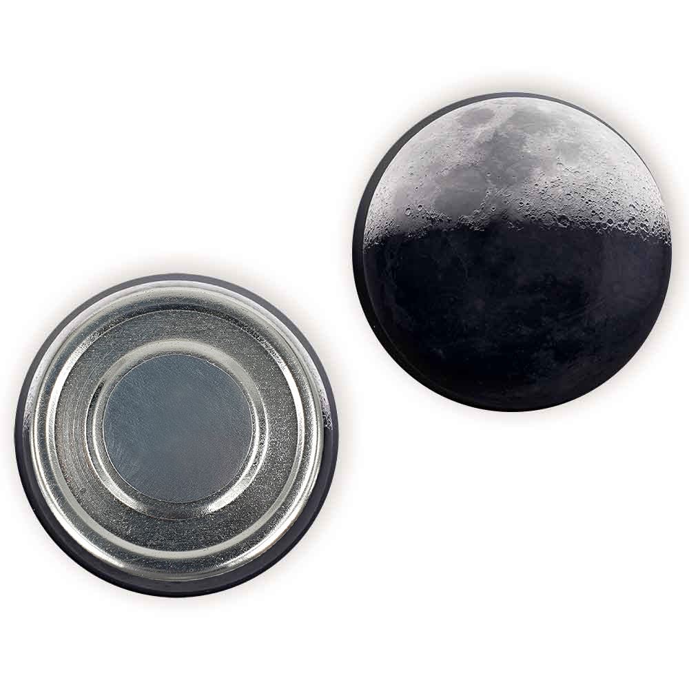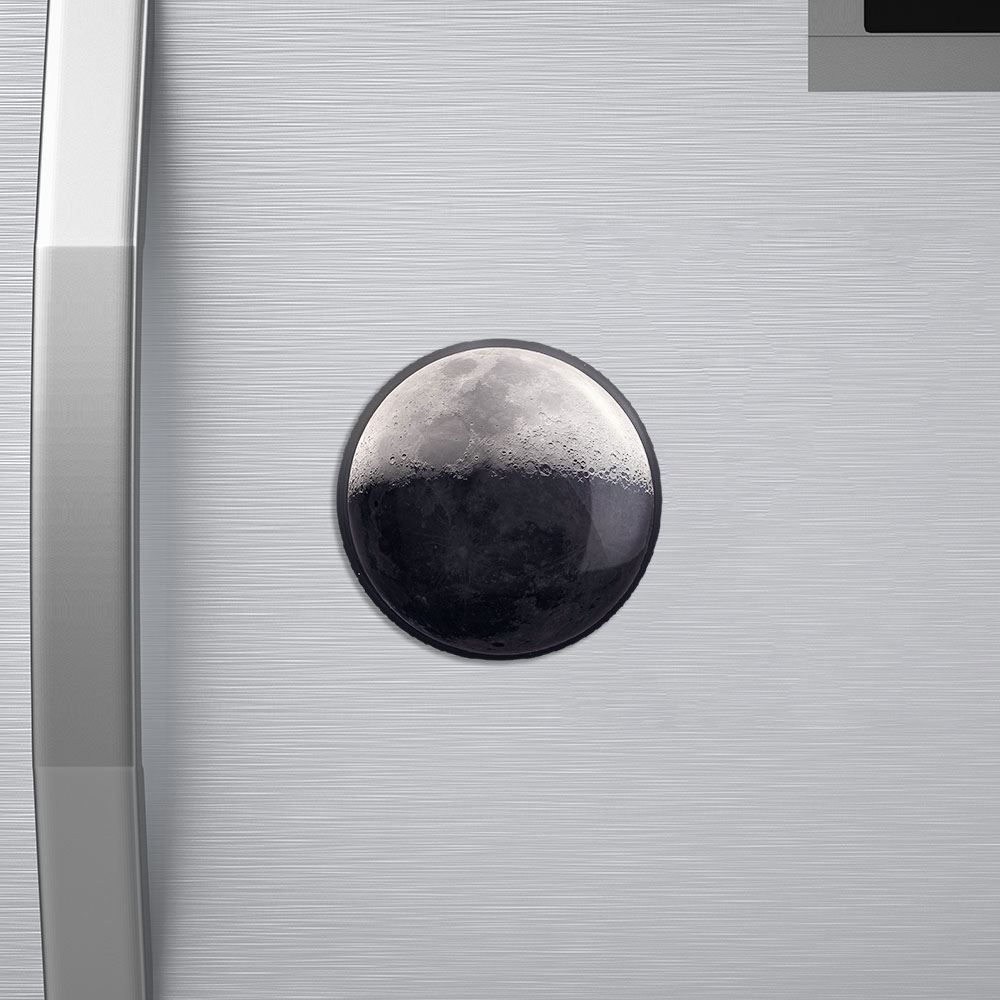مگنت ماه خندالو با روکش سلفون مات مخملی ضدخش و قطعه پشتی فلزی تولید شده است که آهنربای اتمی بکار برده شده در محصول، بصورت مخفی تعبیه شده ودیده نمی شود. ضمن اینکه گیرایی بسیار بالایی داشته و به هیچ عنوان از روی یخچال نمی افتد.