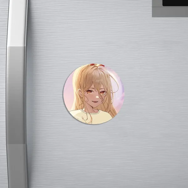 مگنت ماکیما انیمه مرد اره ای Chainsaw Man خندالو با روکش سلفون مات مخملی ضدخش و قطعه پشتی فلزی تولید شده است که آهنربای اتمی بکار برده شده در محصول، بصورت مخفی تعبیه شده ودیده نمی شود. ضمن اینکه گیرایی بسیار بالایی داشته و به هیچ عنوان از روی یخچال نمی افتد.