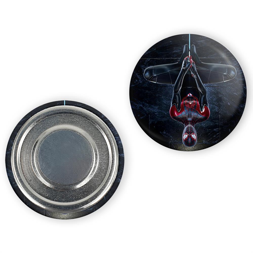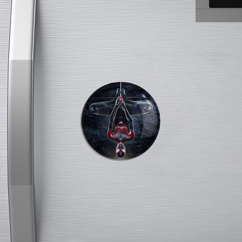 مگنت مایلز مورالز مردعنکبوتی خندالو با روکش سلفون مات مخملی ضدخش و قطعه پشتی فلزی تولید شده است که آهنربای اتمی بکار برده شده در محصول، بصورت مخفی تعبیه شده ودیده نمی شود. ضمن اینکه گیرایی بسیار بالایی داشته و به هیچ عنوان از روی یخچال نمی افتد.