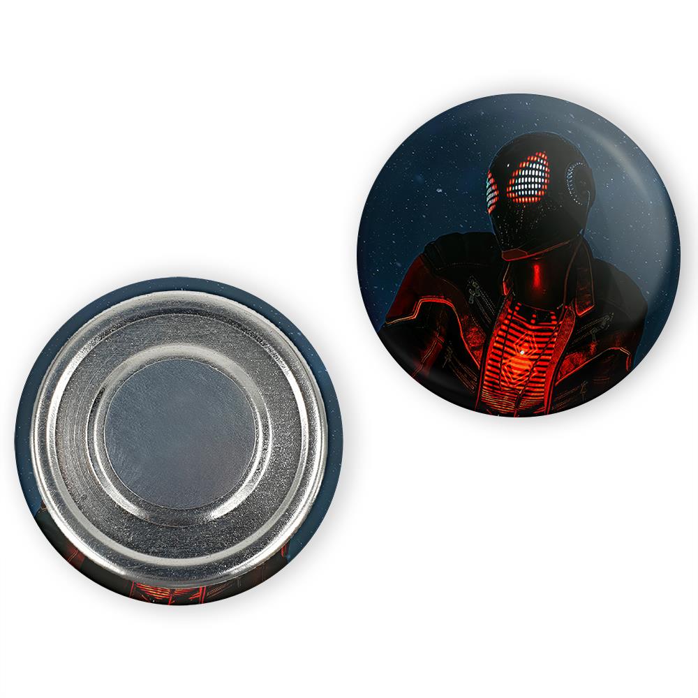 مگنت مایلز مورالز مردعنکبوتی خندالو با روکش سلفون مات مخملی ضدخش و قطعه پشتی فلزی تولید شده است که آهنربای اتمی بکار برده شده در محصول، بصورت مخفی تعبیه شده ودیده نمی شود. ضمن اینکه گیرایی بسیار بالایی داشته و به هیچ عنوان از روی یخچال نمی افتد.