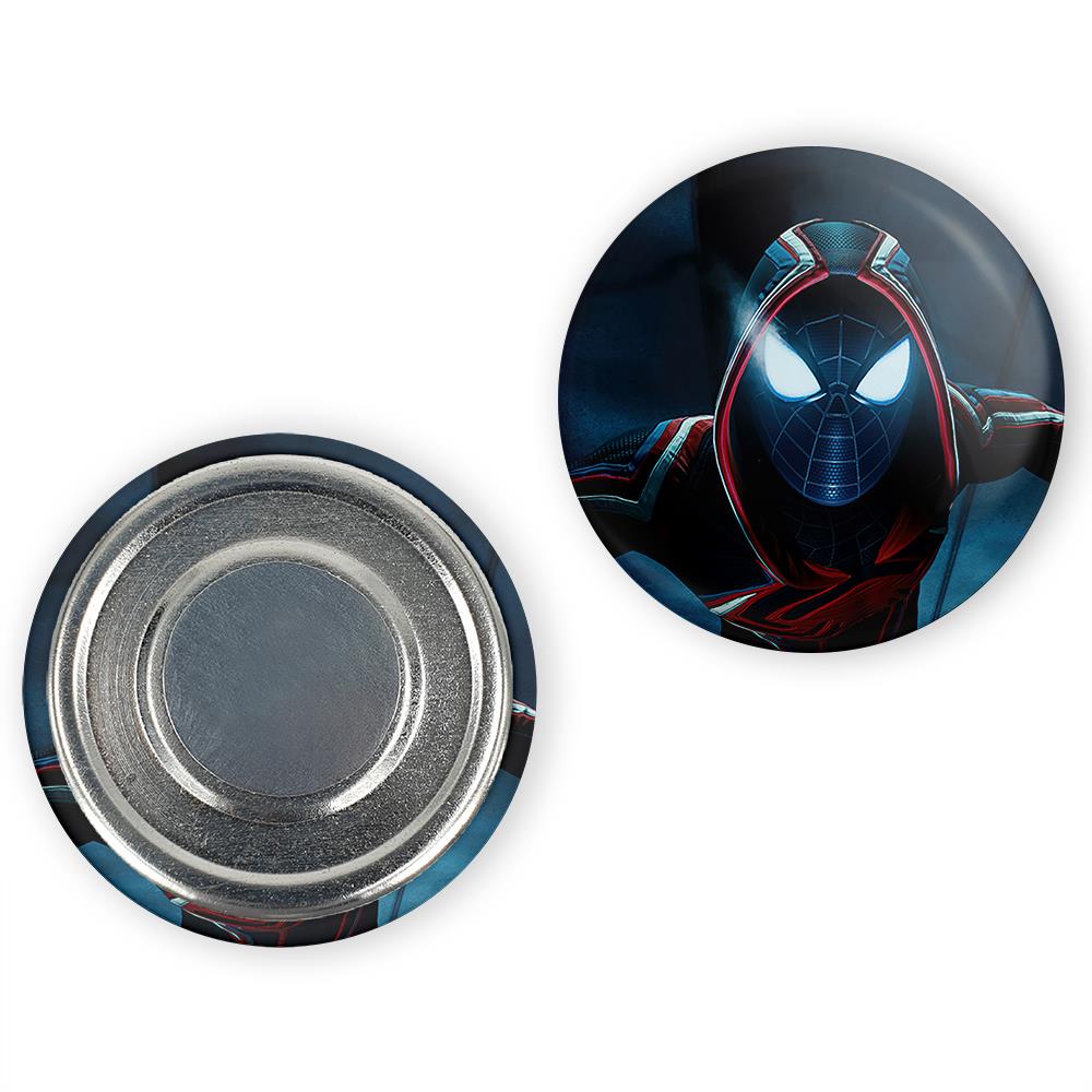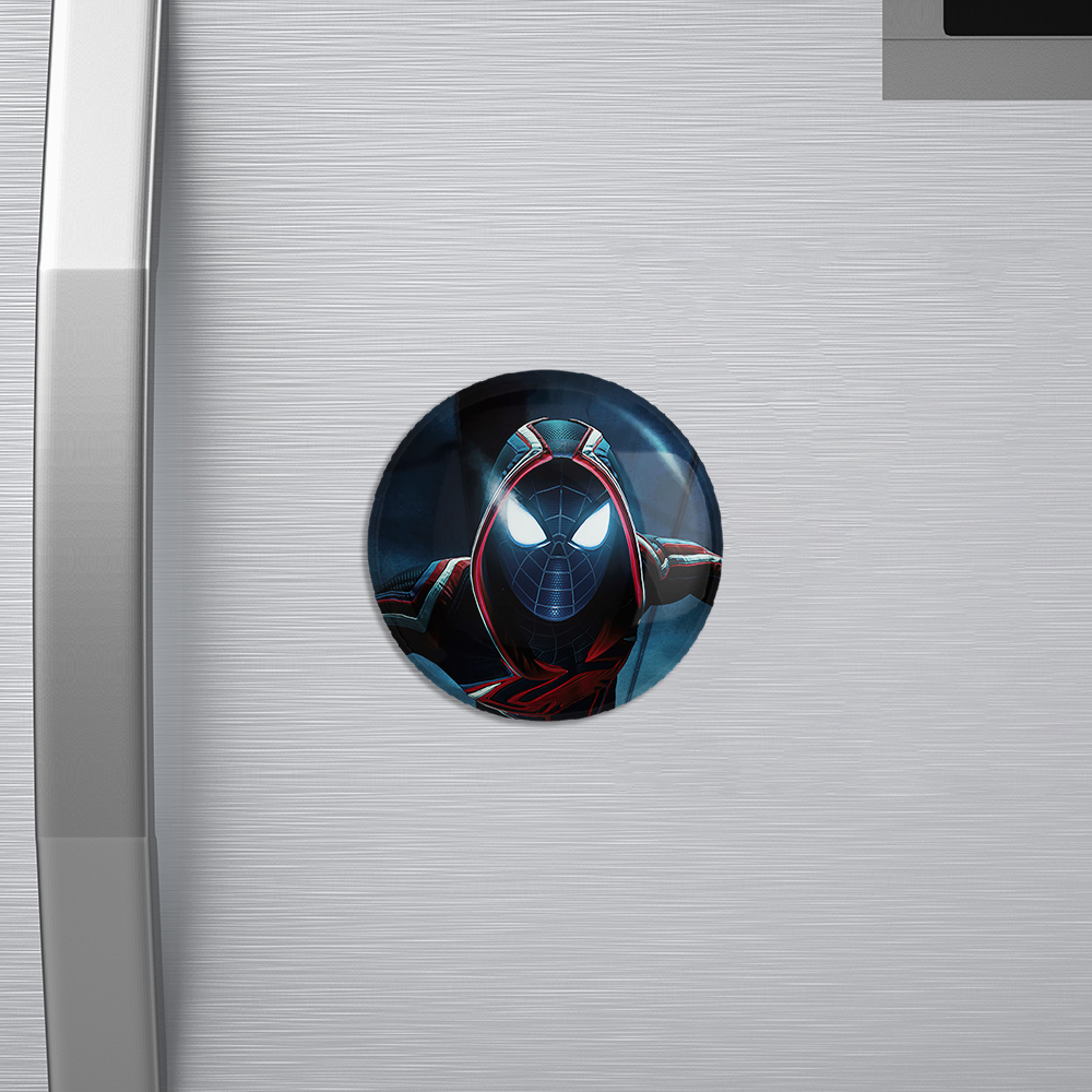 مگنت مایلز مورالز مردعنکبوتی خندالو با روکش سلفون مات مخملی ضدخش و قطعه پشتی فلزی تولید شده است که آهنربای اتمی بکار برده شده در محصول، بصورت مخفی تعبیه شده ودیده نمی شود. ضمن اینکه گیرایی بسیار بالایی داشته و به هیچ عنوان از روی یخچال نمی افتد.