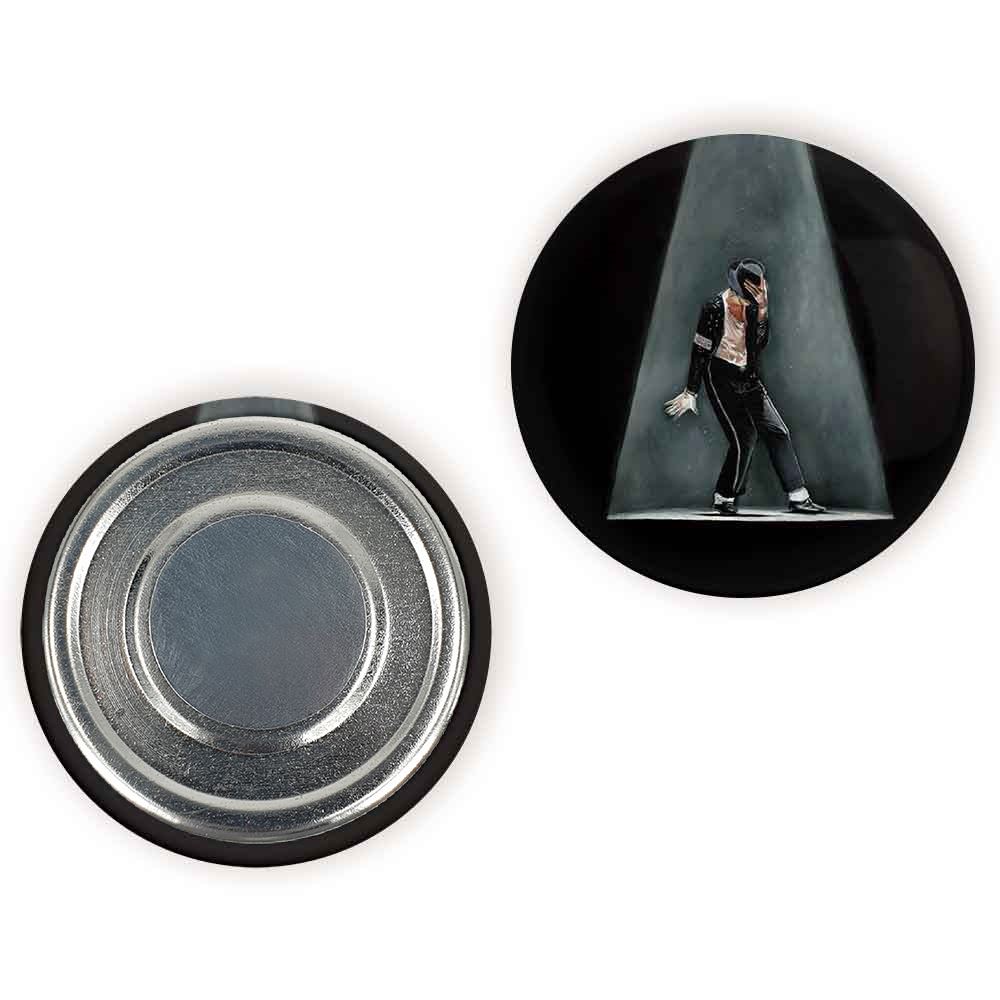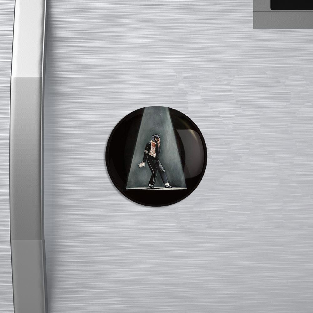 مگنت مایکل جکسون Michael Jackson خندالو با روکش سلفون مات مخملی ضدخش و قطعه پشتی فلزی تولید شده است که آهنربای اتمی بکار برده شده در محصول، بصورت مخفی تعبیه شده ودیده نمی شود. ضمن اینکه گیرایی بسیار بالایی داشته و به هیچ عنوان از روی یخچال نمی افتد.