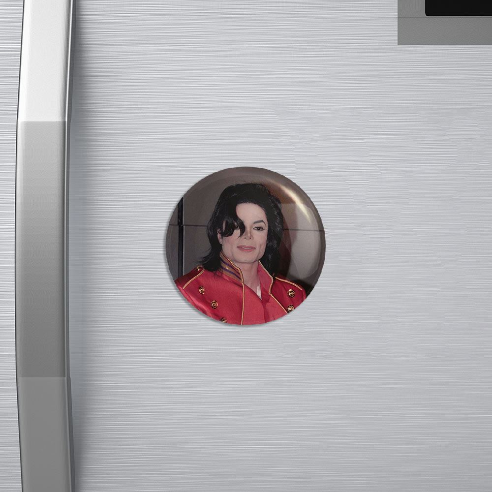 مگنت مایکل جکسون Michael Jackson خندالو با روکش سلفون مات مخملی ضدخش و قطعه پشتی فلزی تولید شده است که آهنربای اتمی بکار برده شده در محصول، بصورت مخفی تعبیه شده ودیده نمی شود. ضمن اینکه گیرایی بسیار بالایی داشته و به هیچ عنوان از روی یخچال نمی افتد.