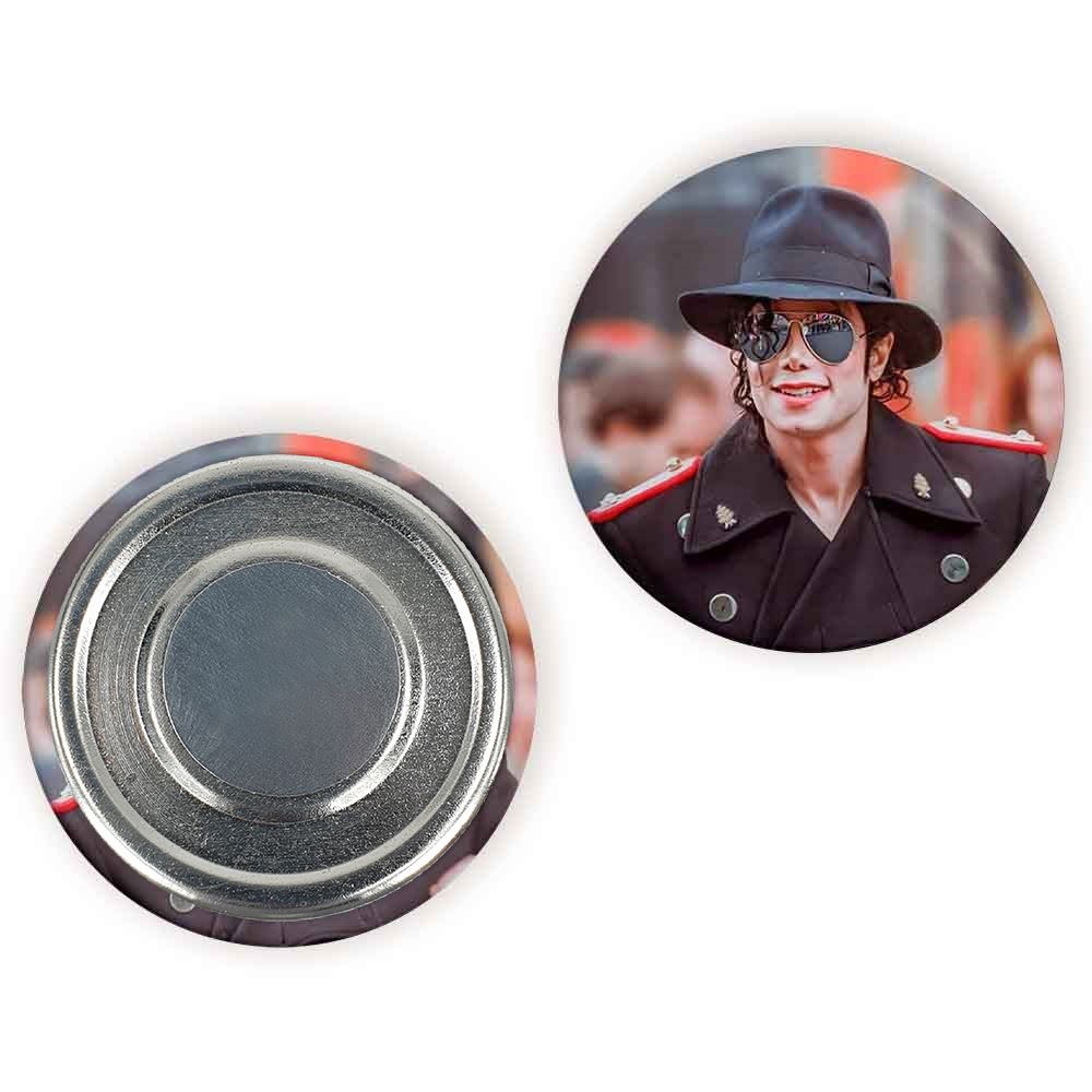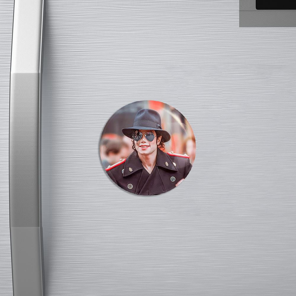 مگنت مایکل جکسون Michael Jackson خندالو با روکش سلفون مات مخملی ضدخش و قطعه پشتی فلزی تولید شده است که آهنربای اتمی بکار برده شده در محصول، بصورت مخفی تعبیه شده ودیده نمی شود. ضمن اینکه گیرایی بسیار بالایی داشته و به هیچ عنوان از روی یخچال نمی افتد.