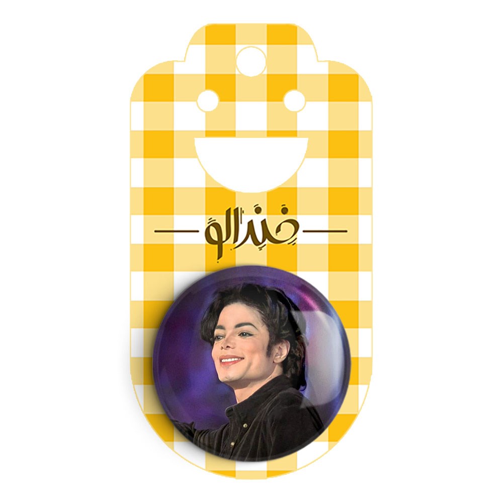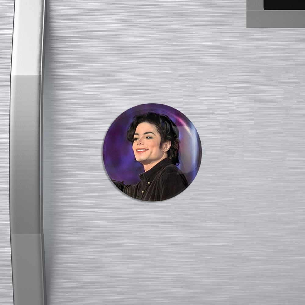 مگنت مایکل جکسون Michael Jackson خندالو با روکش سلفون مات مخملی ضدخش و قطعه پشتی فلزی تولید شده است که آهنربای اتمی بکار برده شده در محصول، بصورت مخفی تعبیه شده ودیده نمی شود. ضمن اینکه گیرایی بسیار بالایی داشته و به هیچ عنوان از روی یخچال نمی افتد.