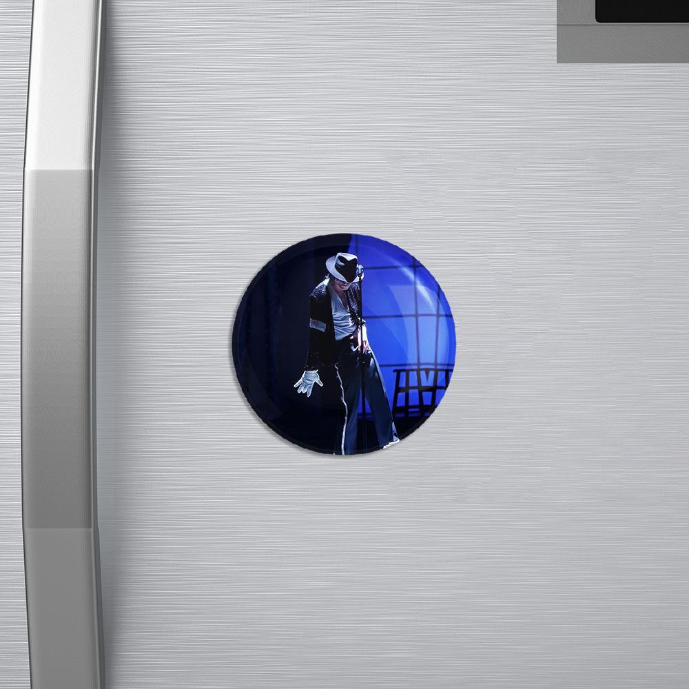 مگنت مایکل جکسون Michael Jackson خندالو با روکش سلفون مات مخملی ضدخش و قطعه پشتی فلزی تولید شده است که آهنربای اتمی بکار برده شده در محصول، بصورت مخفی تعبیه شده ودیده نمی شود. ضمن اینکه گیرایی بسیار بالایی داشته و به هیچ عنوان از روی یخچال نمی افتد.