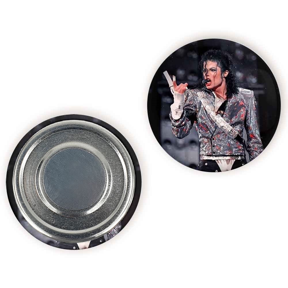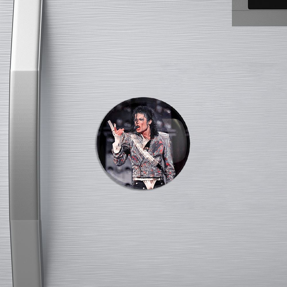 مگنت مایکل جکسون Michael Jackson خندالو با روکش سلفون مات مخملی ضدخش و قطعه پشتی فلزی تولید شده است که آهنربای اتمی بکار برده شده در محصول، بصورت مخفی تعبیه شده ودیده نمی شود. ضمن اینکه گیرایی بسیار بالایی داشته و به هیچ عنوان از روی یخچال نمی افتد.