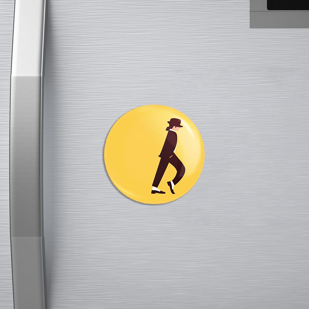 مگنت مایکل جکسون Michael Jackson خندالو با روکش سلفون مات مخملی ضدخش و قطعه پشتی فلزی تولید شده است که آهنربای اتمی بکار برده شده در محصول، بصورت مخفی تعبیه شده ودیده نمی شود. ضمن اینکه گیرایی بسیار بالایی داشته و به هیچ عنوان از روی یخچال نمی افتد.