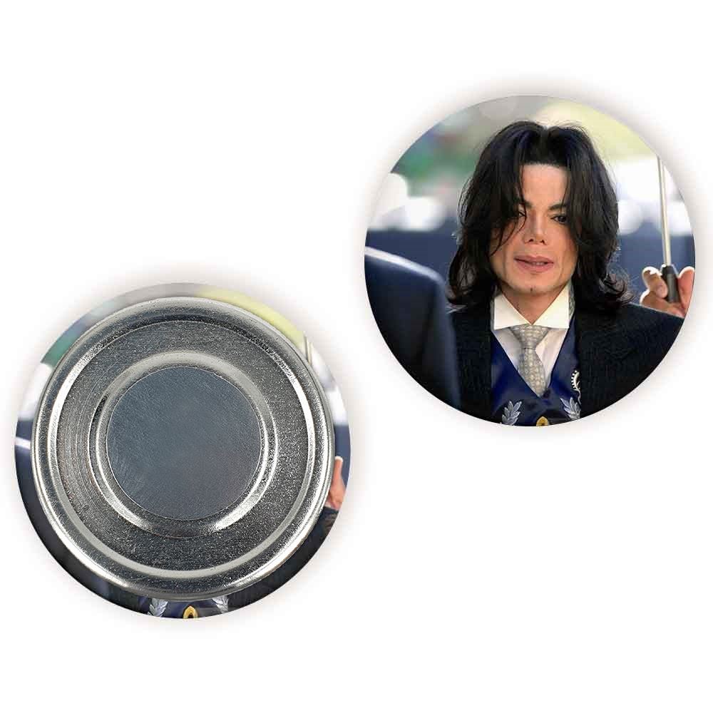 مگنت مایکل جکسون Michael Jackson خندالو با روکش سلفون مات مخملی ضدخش و قطعه پشتی فلزی تولید شده است که آهنربای اتمی بکار برده شده در محصول، بصورت مخفی تعبیه شده ودیده نمی شود. ضمن اینکه گیرایی بسیار بالایی داشته و به هیچ عنوان از روی یخچال نمی افتد.