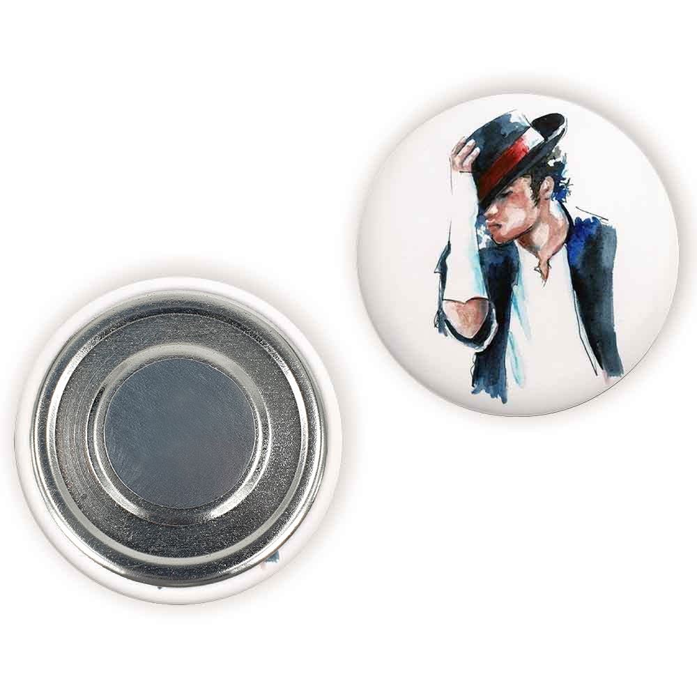 مگنت مایکل جکسون Michael Jackson خندالو با روکش سلفون مات مخملی ضدخش و قطعه پشتی فلزی تولید شده است که آهنربای اتمی بکار برده شده در محصول، بصورت مخفی تعبیه شده ودیده نمی شود. ضمن اینکه گیرایی بسیار بالایی داشته و به هیچ عنوان از روی یخچال نمی افتد.