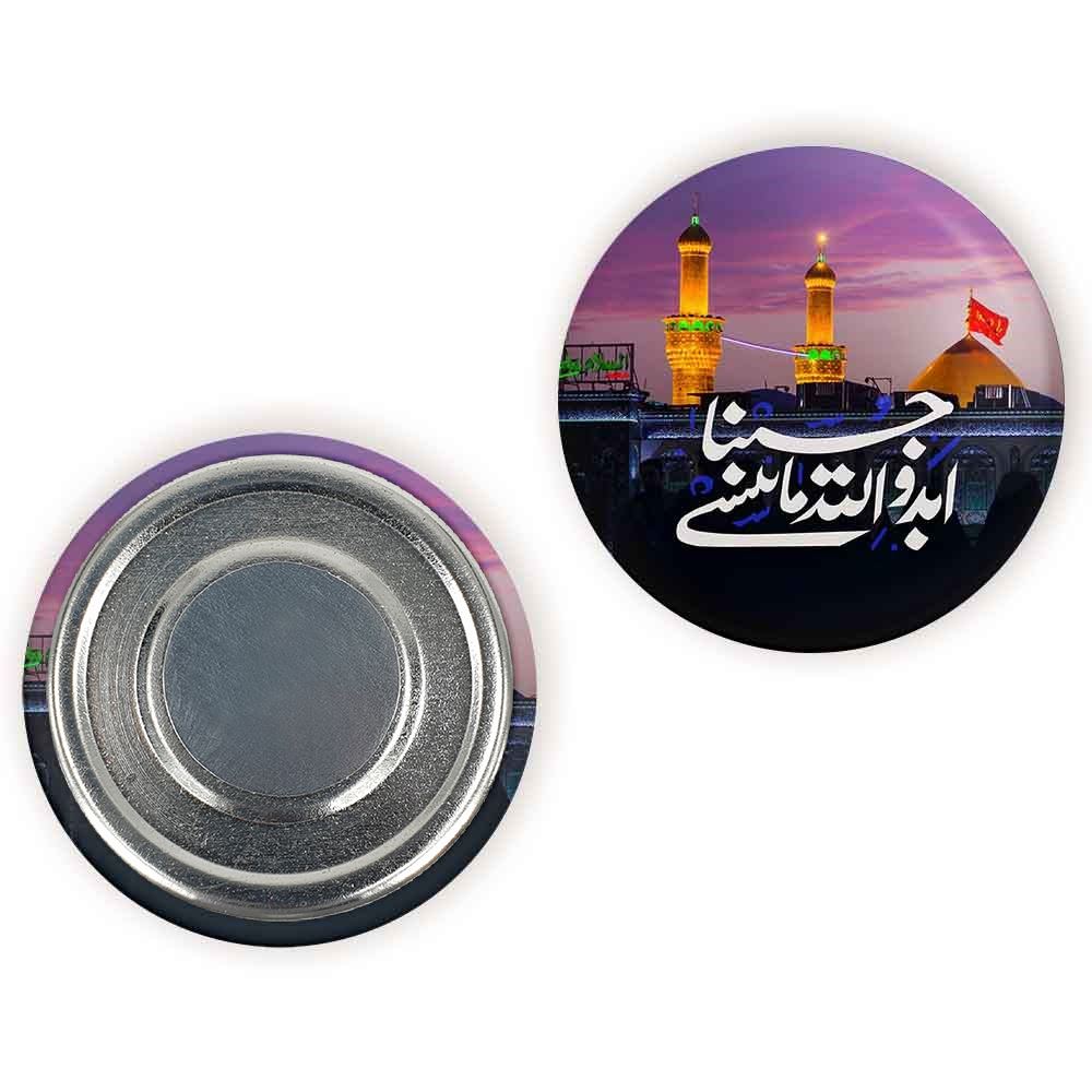 مگنت محرم ابد والله ما ننسی حسینا خندالو با روکش سلفون مات مخملی ضدخش و قطعه پشتی فلزی تولید شده است که آهنربای اتمی بکار برده شده در محصول، بصورت مخفی تعبیه شده ودیده نمی شود. ضمن اینکه گیرایی بسیار بالایی داشته و به هیچ عنوان از روی یخچال نمی افتد.