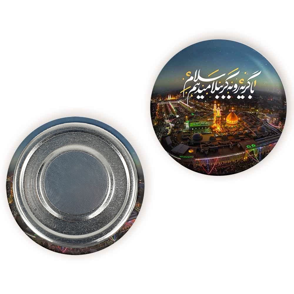 مگنت محرم با گریه رو به کربُبلا میدهم سلام خندالو با روکش سلفون مات مخملی ضدخش و قطعه پشتی فلزی تولید شده است که آهنربای اتمی بکار برده شده در محصول، بصورت مخفی تعبیه شده ودیده نمی شود. ضمن اینکه گیرایی بسیار بالایی داشته و به هیچ عنوان از روی یخچال نمی افتد.