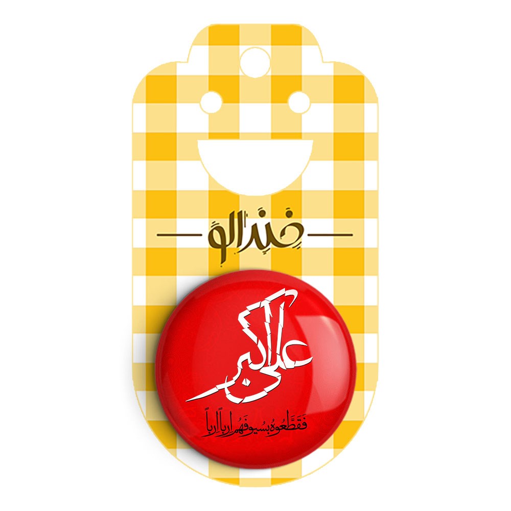 مگنت محرم حضرت علی اکبر خندالو با روکش سلفون مات مخملی ضدخش و قطعه پشتی فلزی تولید شده است که آهنربای اتمی بکار برده شده در محصول، بصورت مخفی تعبیه شده ودیده نمی شود. ضمن اینکه گیرایی بسیار بالایی داشته و به هیچ عنوان از روی یخچال نمی افتد.