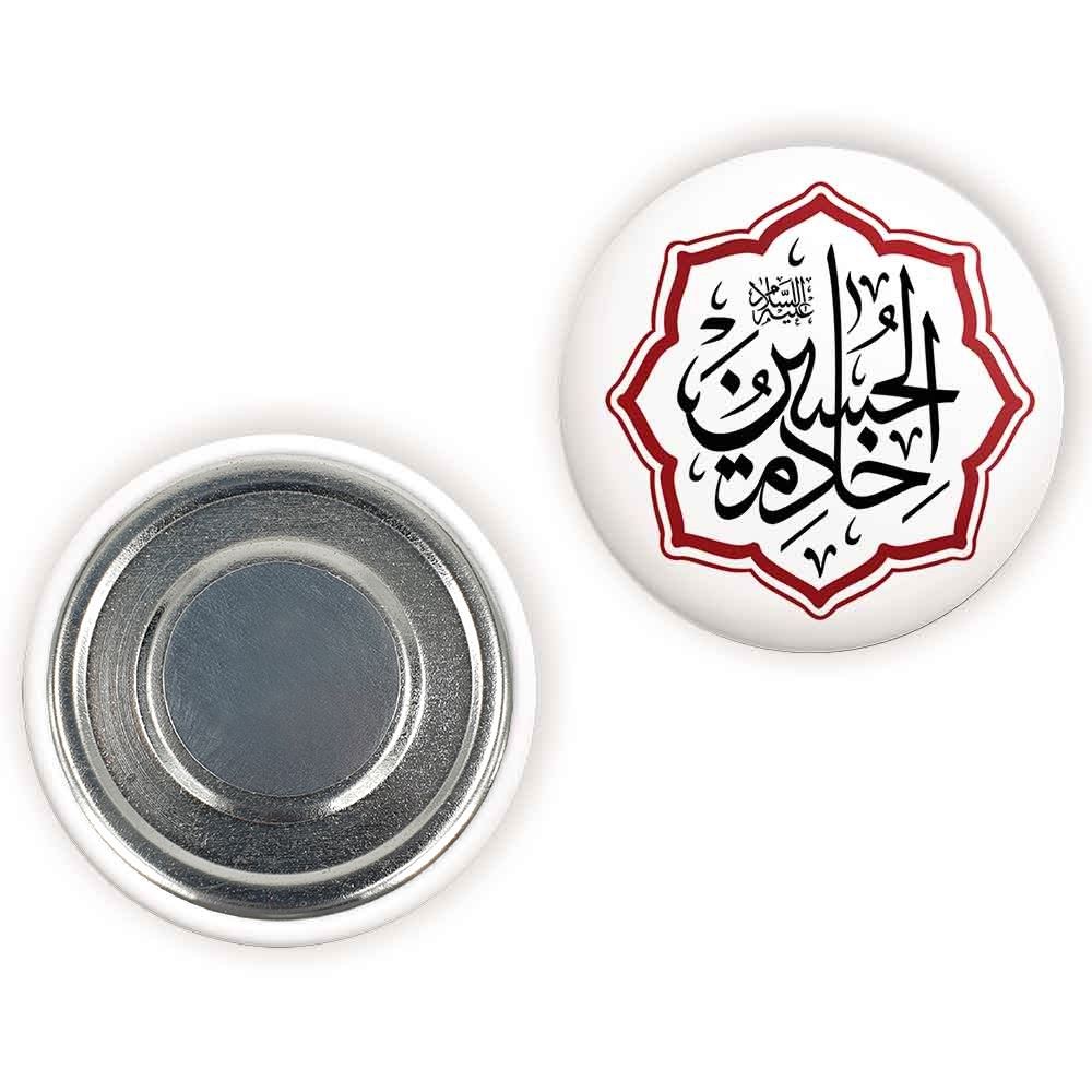 مگنت محرم خادم الحسین خندالو با روکش سلفون مات مخملی ضدخش و قطعه پشتی فلزی تولید شده است که آهنربای اتمی بکار برده شده در محصول، بصورت مخفی تعبیه شده ودیده نمی شود. ضمن اینکه گیرایی بسیار بالایی داشته و به هیچ عنوان از روی یخچال نمی افتد.