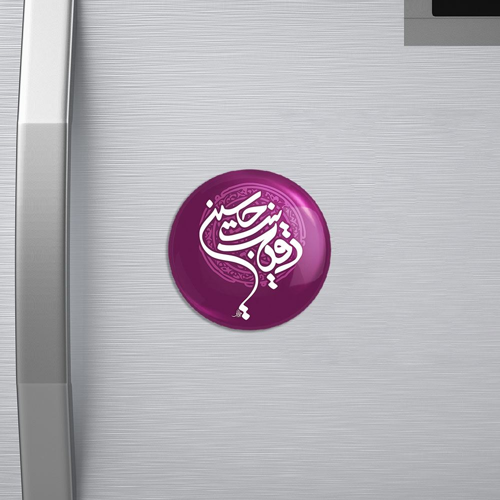 مگنت محرم رقیه بنت حسین خندالو با روکش سلفون مات مخملی ضدخش و قطعه پشتی فلزی تولید شده است که آهنربای اتمی بکار برده شده در محصول، بصورت مخفی تعبیه شده ودیده نمی شود. ضمن اینکه گیرایی بسیار بالایی داشته و به هیچ عنوان از روی یخچال نمی افتد.