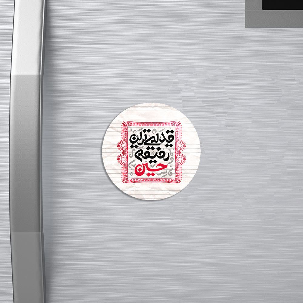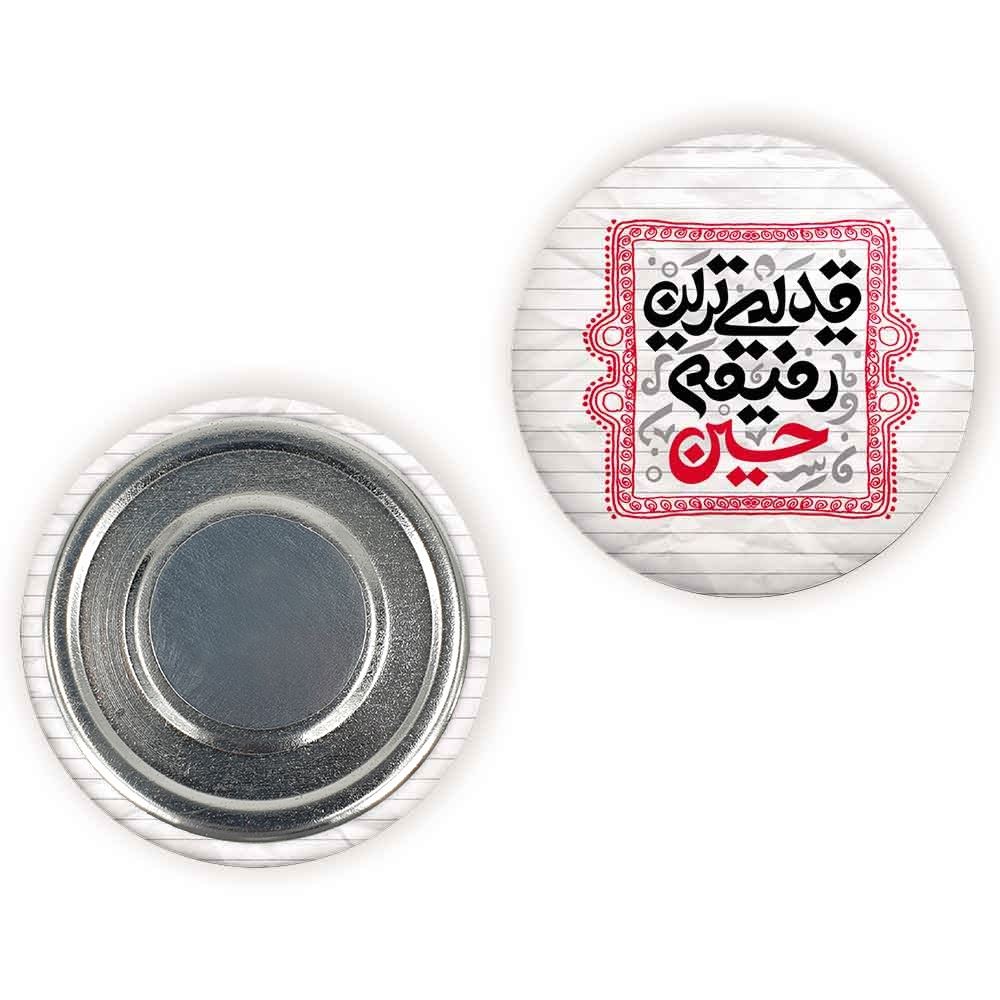مگنت محرم قدیمی ترین رفیقم حسین خندالو با روکش سلفون مات مخملی ضدخش و قطعه پشتی فلزی تولید شده است که آهنربای اتمی بکار برده شده در محصول، بصورت مخفی تعبیه شده ودیده نمی شود. ضمن اینکه گیرایی بسیار بالایی داشته و به هیچ عنوان از روی یخچال نمی افتد. نکته مهم این است که به دلیل مخفی بودن آهنربا، هیچگونه خط و خش و زدگی بر روی یخچال ایجاد نخواهد شد. چاپ مگنت یخچال محرم قدیمی ترین رفیقم حسین نیز با دستگاه های استاندارد و با بهترین سطح کیفیت صورت گرفته و طرح با شفافیتی مثال زدنی و با سلفون چسبی تولید شده است که باعث شده محصول نهایی بدون شکست نور دیده شود. همچنین بسته بندی جذاب و مینیمال مگنت های یخچالی، آنها را مناسب هدیه کرده است. مگنت محرم قدیمی ترین رفیقم حسین خندالو علاوه بر روی یخچال بر هر سطح فلزی دیگری مثل لولای در اتاق، کمد های آهنی و … نیز قابل نصب است.