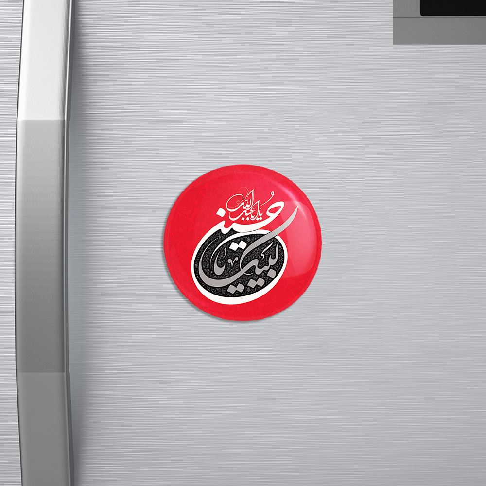 مگنت محرم لبیک یاحسین خندالو با روکش سلفون مات مخملی ضدخش و قطعه پشتی فلزی تولید شده است که آهنربای اتمی بکار برده شده در محصول، بصورت مخفی تعبیه شده ودیده نمی شود. ضمن اینکه گیرایی بسیار بالایی داشته و به هیچ عنوان از روی یخچال نمی افتد.