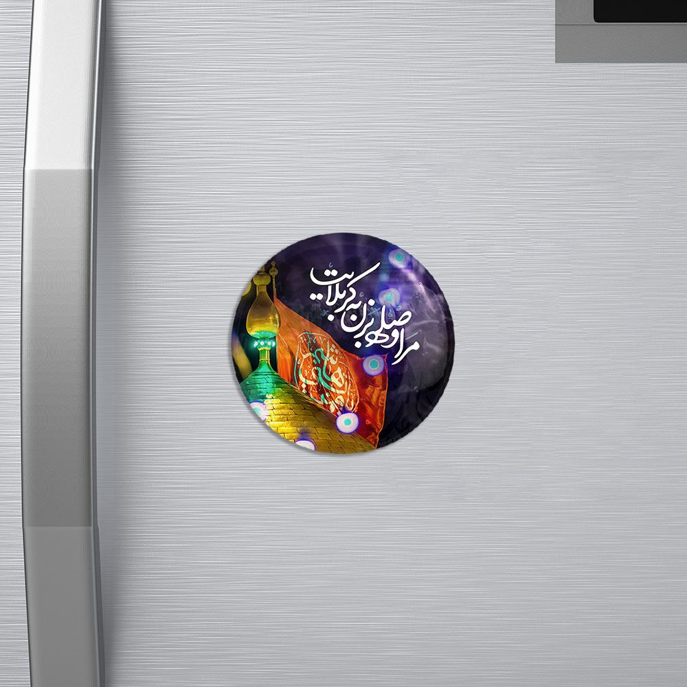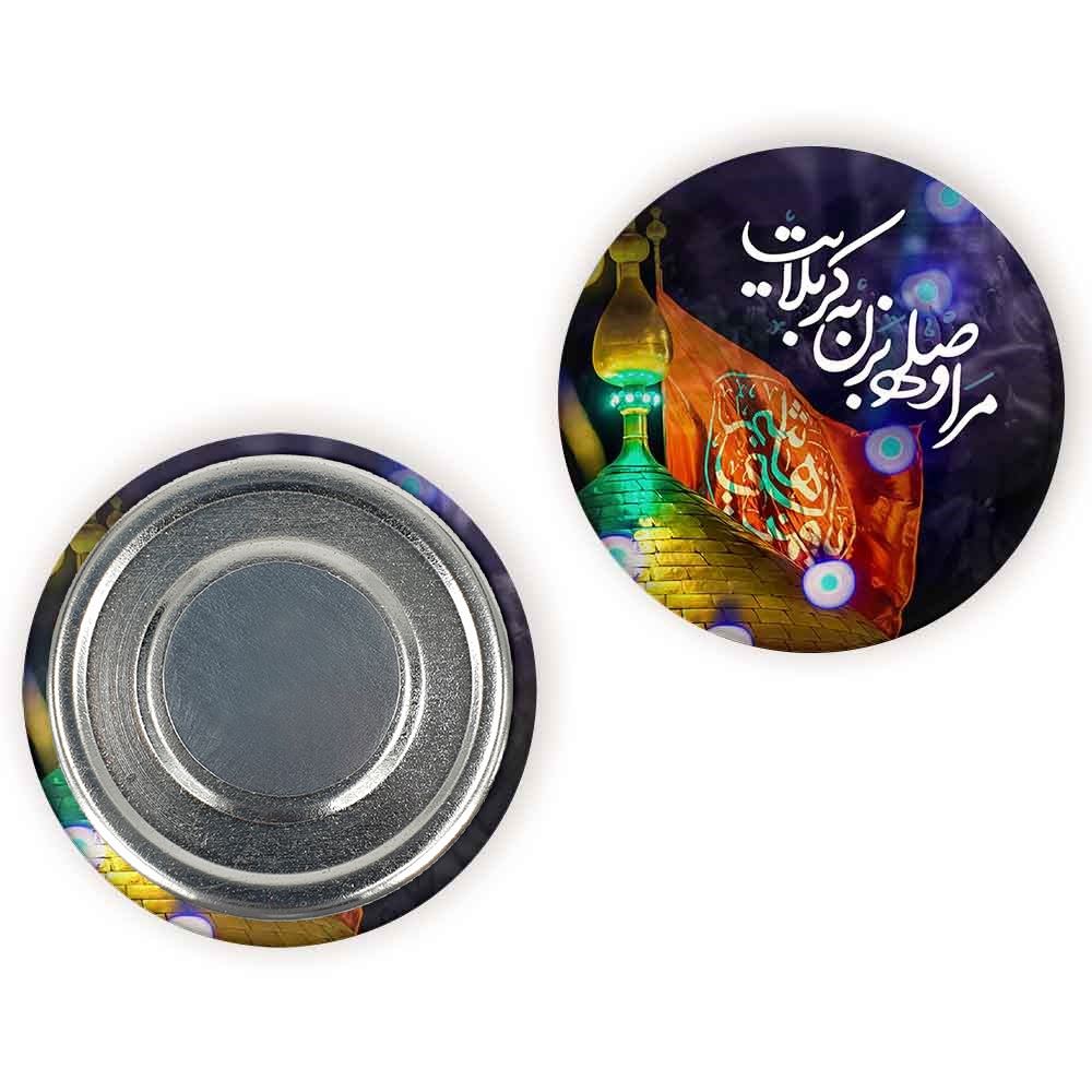 مگنت محرم مرا وصله بزن به کربلایت خندالو با روکش سلفون مات مخملی ضدخش و قطعه پشتی فلزی تولید شده است که آهنربای اتمی بکار برده شده در محصول، بصورت مخفی تعبیه شده ودیده نمی شود. ضمن اینکه گیرایی بسیار بالایی داشته و به هیچ عنوان از روی یخچال نمی افتد.