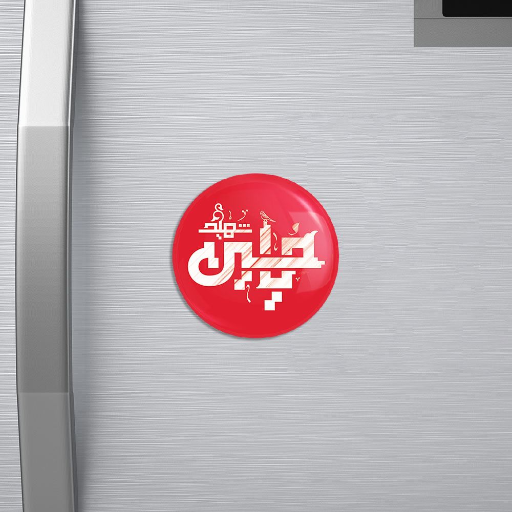 مگنت محرم یاحسین شهید خندالو با روکش سلفون مات مخملی ضدخش و قطعه پشتی فلزی تولید شده است که آهنربای اتمی بکار برده شده در محصول، بصورت مخفی تعبیه شده ودیده نمی شود. ضمن اینکه گیرایی بسیار بالایی داشته و به هیچ عنوان از روی یخچال نمی افتد.