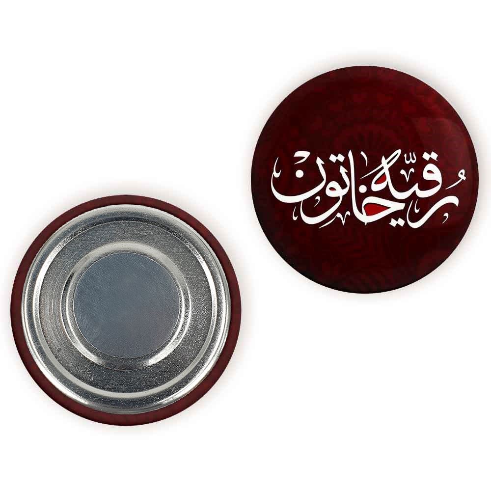 مگنت محرم یا رقیه خندالو با روکش سلفون مات مخملی ضدخش و قطعه پشتی فلزی تولید شده است که آهنربای اتمی بکار برده شده در محصول، بصورت مخفی تعبیه شده ودیده نمی شود. ضمن اینکه گیرایی بسیار بالایی داشته و به هیچ عنوان از روی یخچال نمی افتد.