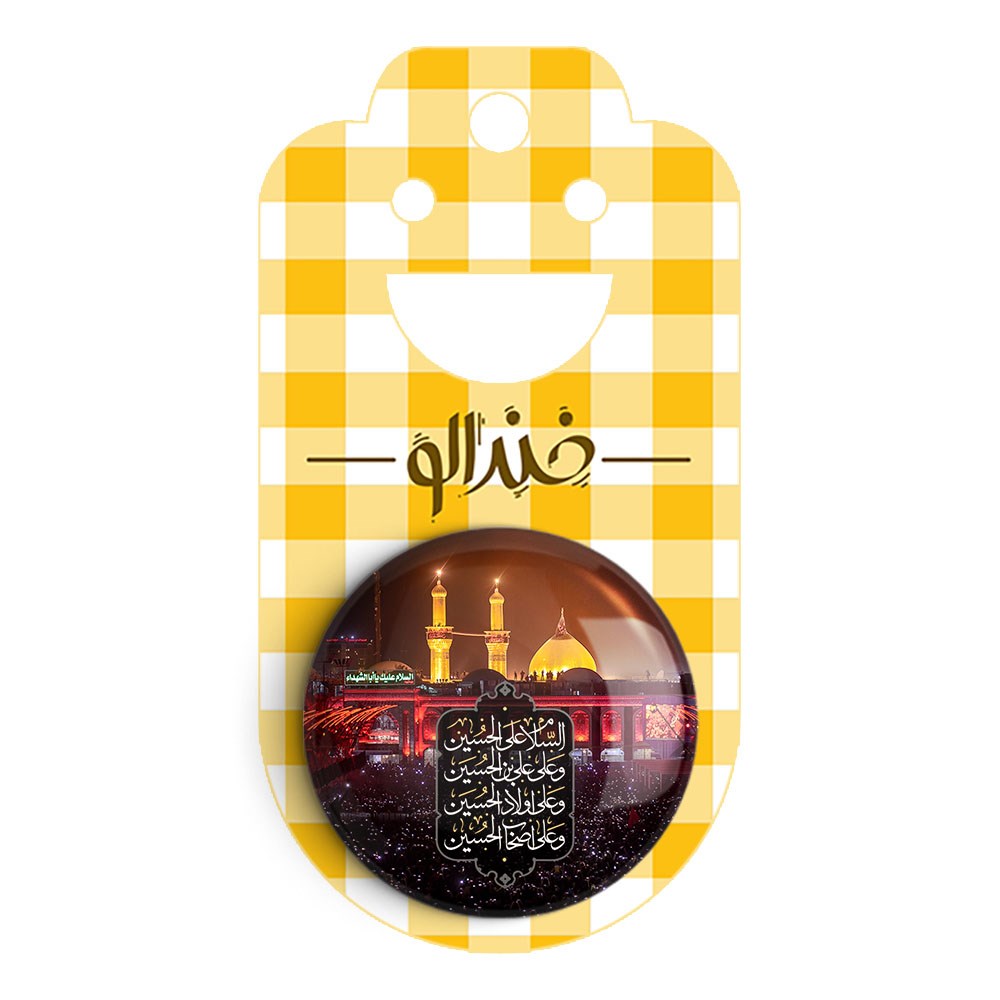 مگنت محرم خندالو با روکش سلفون مات مخملی ضدخش و قطعه پشتی فلزی تولید شده است که آهنربای اتمی بکار برده شده در محصول، بصورت مخفی تعبیه شده ودیده نمی شود. ضمن اینکه گیرایی بسیار بالایی داشته و به هیچ عنوان از روی یخچال نمی افتد.