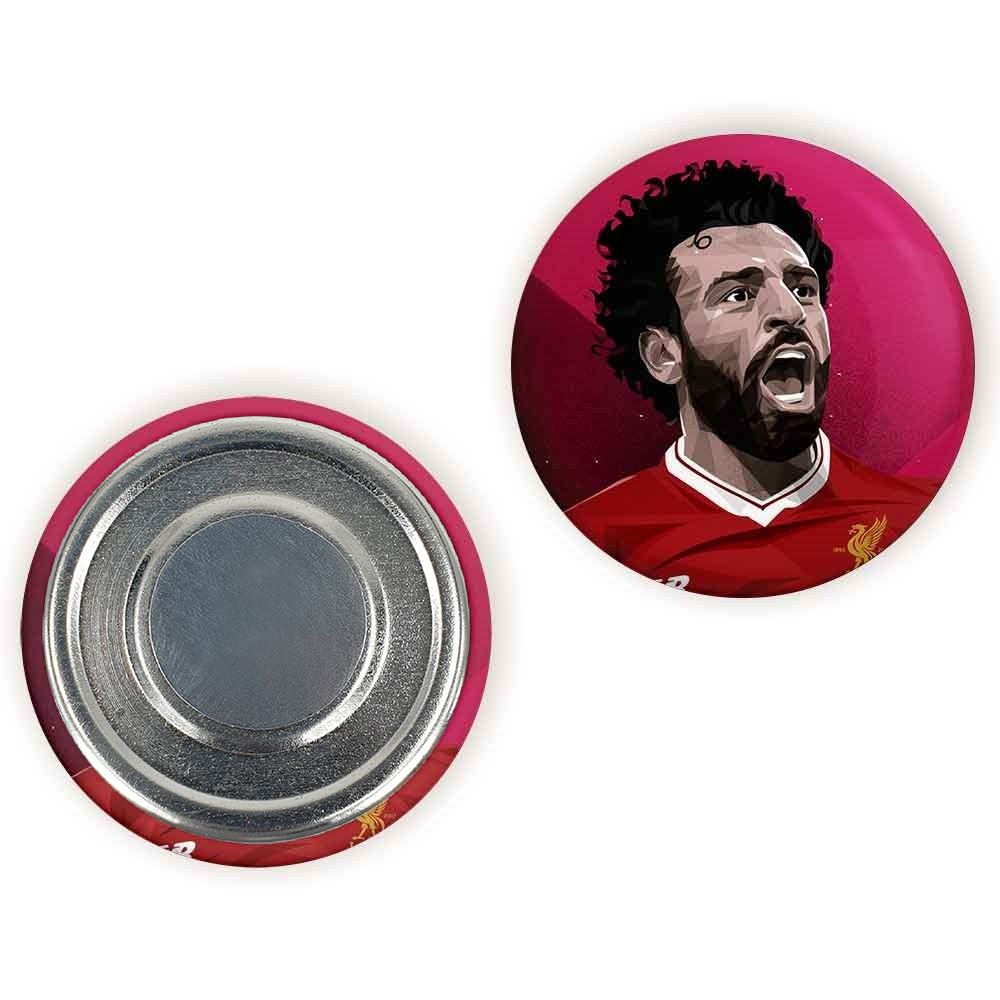 مگنت محمد صلاح خندالو با روکش سلفون مات مخملی ضدخش و قطعه پشتی فلزی تولید شده است که آهنربای اتمی بکار برده شده در محصول، بصورت مخفی تعبیه شده ودیده نمی شود. ضمن اینکه گیرایی بسیار بالایی داشته و به هیچ عنوان از روی یخچال نمی افتد.