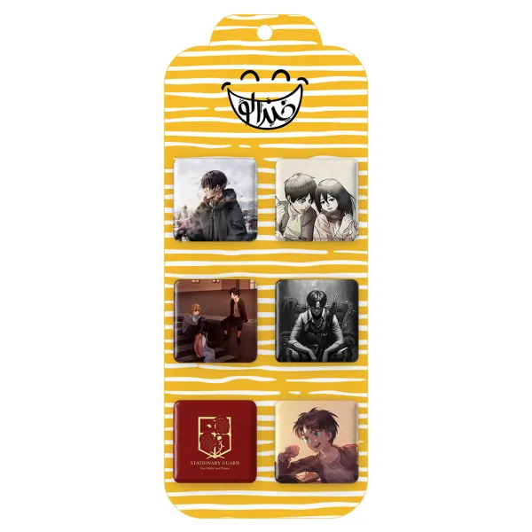 پک ۶ عددی مگنت مربعی خندالو طرح انیمه اتک آن تایتان (Attack on Titan) محصولی جدید، جذاب و منحصر به فرد هستند که با بالاترین سطح کیفی تولید می شوند.فرم مربعی مگنت های خندالو، آنها را بدل به محصولی خاص و کمتر دیده شده کرده است. آهنربای پشت مگنت ها، به نحوی تولید شده اند که هنگام نصب بر روی سطوح آهنی ایستایی بسیار خوبی دارند و به راحتی کنده نمی شوند. در چاپ طرح های مگنت خندالو از بهترین جوهر و کاغذ موجود استفاده می کنیم تا جلا و جذابیت طرح، کاملا حفظ شود.