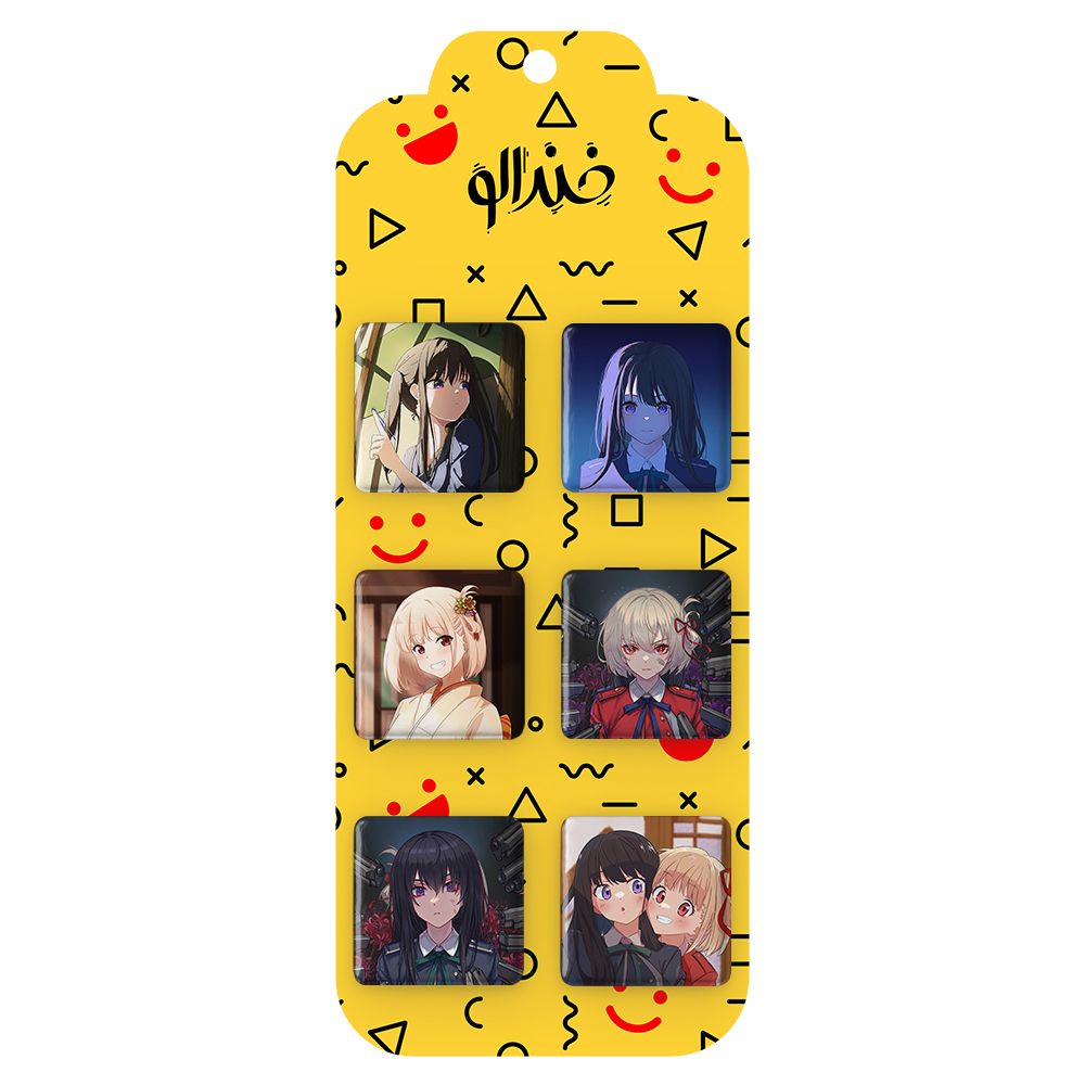 پک ۶ عددی مگنت مربعی خندالو طرح انیمه لیکوریس ریکویل محصولی جدید، جذاب و منحصر به فرد هستند که با بالاترین سطح کیفی تولید می شوند.فرم مربعی مگنت های خندالو، آنها را بدل به محصولی خاص و کمتر دیده شده کرده است. آهنربای پشت مگنت ها، به نحوی تولید شده اند که هنگام نصب بر روی سطوح آهنی ایستایی بسیار خوبی دارند و به راحتی کنده نمی شوند. در چاپ طرح های مگنت خندالو از بهترین جوهر و کاغذ موجود استفاده می کنیم تا جلا و جذابیت طرح، کاملا حفظ شود.