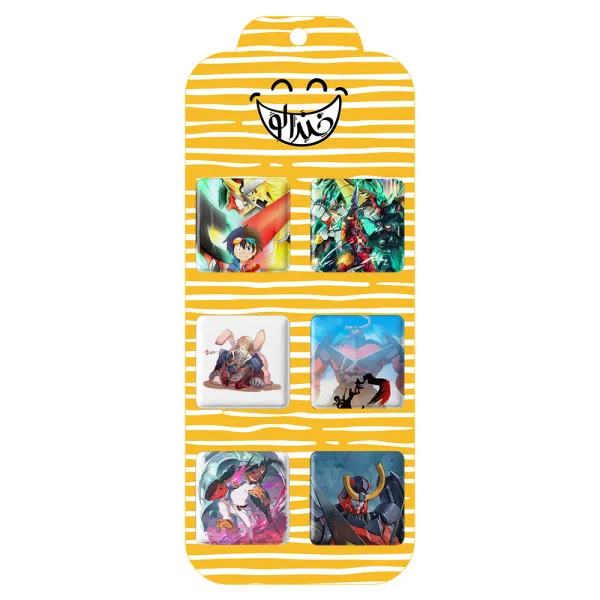 پک ۶ عددی مگنت مربعی خندالو طرح انیمه گورن لاگان (Gurren Lagann) محصولی جدید، جذاب و منحصر به فرد هستند که با بالاترین سطح کیفی تولید می شوند.فرم مربعی مگنت های خندالو، آنها را بدل به محصولی خاص و کمتر دیده شده کرده است. آهنربای پشت مگنت ها، به نحوی تولید شده اند که هنگام نصب بر روی سطوح آهنی ایستایی بسیار خوبی دارند و به راحتی کنده نمی شوند. در چاپ طرح های مگنت خندالو از بهترین جوهر و کاغذ موجود استفاده می کنیم تا جلا و جذابیت طرح، کاملا حفظ شود.