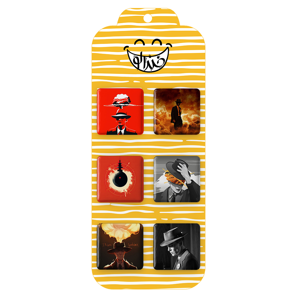 پک ۶ عددی مگنت مربعی خندالو طرح اوپنهایمر (Oppenheimer) محصولی جدید، جذاب و منحصر به فرد هستند که با بالاترین سطح کیفی تولید می شوند.فرم مربعی مگنت های خندالو، آنها را بدل به محصولی خاص و کمتر دیده شده کرده است. آهنربای پشت مگنت ها، به نحوی تولید شده اند که هنگام نصب بر روی سطوح آهنی ایستایی بسیار خوبی دارند و به راحتی کنده نمی شوند. در چاپ طرح های مگنت خندالو از بهترین جوهر و کاغذ موجود استفاده می کنیم تا جلا و جذابیت طرح، کاملا حفظ شود. زیرا بالا بودن سطح کیفیت محصولات، همواره بزرگترین دغدغه تیم تولید خندالو بوده است. این تعهد به حفظ کیفیت صرفا مربوط به چاپ روی مگنت نبوده و در مورد بدنه فلزی محصول نیز، همین مهم رعایت شده است. قطعه آهنربای تعبیه شده در پشت مگنت های خندالو محکم و مقاوم بوده و به هیچ عنوان حین باز و بسته شدن درب یخچال، جا به جا یا کنده نمی شوند و همچنین به علت جنس مگنت استفاده شده در پشت محصول، هیچگونه کثیفی و خط و خشی در محل استفاده به جای نمیگذارد مگنت های مربعی خندالو طرح اوپنهایمر (Oppenheimer) برای نصب روی یخچال، چهارچوب در، کمدهای آهنی، وایت بردها و هر سطح آهنی دیگری مناسب هستند. از مگنت برای نگه داشتن عکس و یادداشت روی یخچال و سایر سطوح نیز میتوان استفاده کرد. در مجموعه 6 عددی مگنت های خندالو طرح اوپنهایمر (Oppenheimer) ، هر 6 طرح از یک موضوع انتخاب و تولید می شوند. مجموعه 6 عددی مگنت خندالو می تواند انتخاب مناسبی برای گیفت تولد، گیفت عقد، هدیه جشن دندانی، سیسمونی و یا هر مناسبت دیگری باشد. قیمت مجموعه 6 عددی مگنت خندالو نسبت به کارت های تکی این محصول ارزان تر بوده و مقرون به صرفه تر هستند.