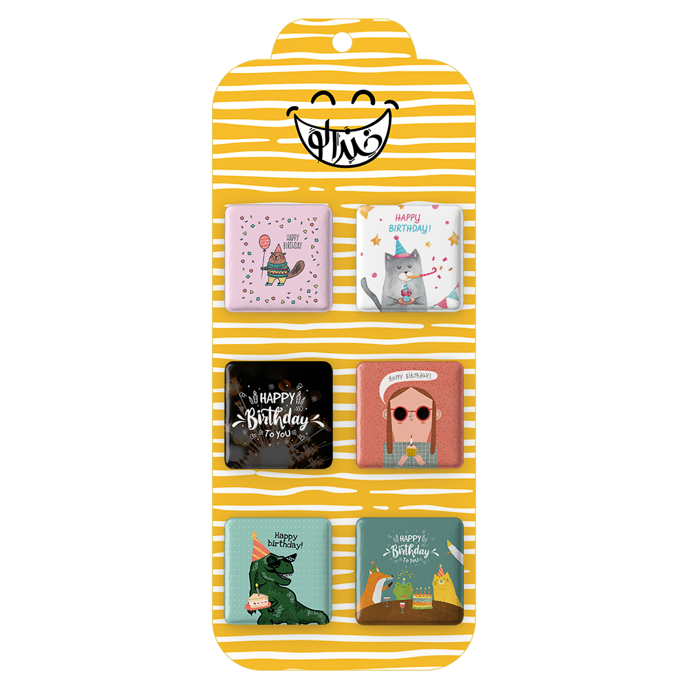 پک ۶ عددی مگنت مربعی خندالو طرح تولد محصولی جدید، جذاب و منحصر به فرد هستند که با بالاترین سطح کیفی تولید می شوند.فرم مربعی مگنت های خندالو، آنها را بدل به محصولی خاص و کمتر دیده شده کرده است. آهنربای پشت مگنت ها، به نحوی تولید شده اند که هنگام نصب بر روی سطوح آهنی ایستایی بسیار خوبی دارند و به راحتی کنده نمی شوند. در چاپ طرح های مگنت خندالو از بهترین جوهر و کاغذ موجود استفاده می کنیم تا جلا و جذابیت طرح، کاملا حفظ شود.