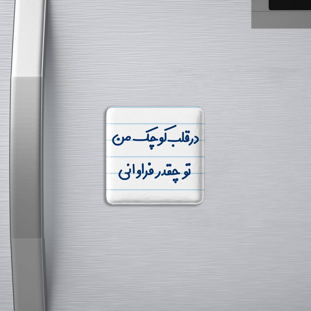 مگنت های مربعی در قلب کوچک من تو چقدر فراوانی خندالو محصولی جدید، جذاب و منحصر به فرد هستند که با بالاترین سطح کیفی تولید می شوند.فرم مربعی مگنت های خندالو، آنها را بدل به محصولی خاص و کمتر دیده شده کرده است. آهنربای پشت مگنت ها، به نحوی تولید شده اند که هنگام نصب بر روی سطوح آهنی ایستایی بسیار خوبی دارند و به راحتی کنده نمی شوند. چاپ مگنت مربعی در قلب کوچک من تو چقدر فراوانی نیز با دستگاه های استاندارد و با بهترین سطح کیفی صورت گرفته و طرح با شفافیتی مثال زدنی و با روکشی شفاف و بدون خط و خش بر روی مگنت نقش بسته است. همچنین بسته بندی جذاب و مینیمال مگنت ها، آنها را بدل به محصولی مناسب هدیه کرده است. مگنت ها قابل نصب بر روی یخچال، کمد های آهنی، چارچوب درها، وایت بردها و هر سطح آهنی دیگری هستند که علاوه بر جذابیت و زیبایی خود آنها، از مگنت ها به عنوان وسیله ای برای قرار دادن عکس روی یخچال و کاغذ روی وایت برد و موارد مصرف دیگر میتوان بهره برد. جنس آهنربای پشت مگنت در قلب کوچک من تو چقدر فراوانی به گونه ای است که کمترین خط و خشی را بر روی یخچال و سایر سطوح باقی نمیگذارد و به هیچ عنوان بدنه یخچال را زخمی یا خراب نمیکند.