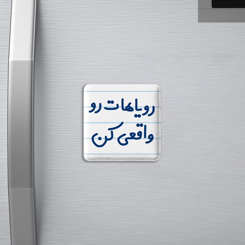 مگنت های مربعی رویاهات رو واقعی کن خندالو محصولی جدید، جذاب و منحصر به فرد هستند که با بالاترین سطح کیفی تولید می شوند.فرم مربعی مگنت های خندالو، آنها را بدل به محصولی خاص و کمتر دیده شده کرده است. آهنربای پشت مگنت ها، به نحوی تولید شده اند که هنگام نصب بر روی سطوح آهنی ایستایی بسیار خوبی دارند و به راحتی کنده نمی شوند. چاپ مگنت مربعی رویاهات رو واقعی کن نیز با دستگاه های استاندارد و با بهترین سطح کیفی صورت گرفته و طرح با شفافیتی مثال زدنی و با روکشی شفاف و بدون خط و خش بر روی مگنت نقش بسته است. همچنین بسته بندی جذاب و مینیمال مگنت ها، آنها را بدل به محصولی مناسب هدیه کرده است. مگنت ها قابل نصب بر روی یخچال، کمد های آهنی، چارچوب درها، وایت بردها و هر سطح آهنی دیگری هستند که علاوه بر جذابیت و زیبایی خود آنها، از مگنت ها به عنوان وسیله ای برای قرار دادن عکس روی یخچال و کاغذ روی وایت برد و موارد مصرف دیگر میتوان بهره برد. جنس آهنربای پشت مگنت رویاهات رو واقعی کن به گونه ای است که کمترین خط و خشی را بر روی یخچال و سایر سطوح باقی نمیگذارد و به هیچ عنوان بدنه یخچال را زخمی یا خراب نمیکند.