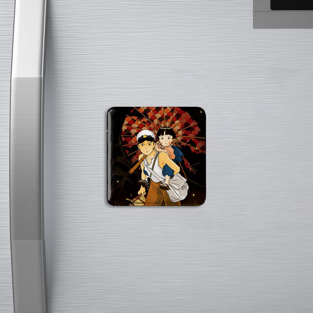 مگنت های مربعی سیتا و ستسوکو انیمیشن گورستان کرم های شب تاب خندالو محصولی جدید، جذاب و منحصر به فرد هستند که با بالاترین سطح کیفی تولید می شوند.فرم مربعی مگنت های خندالو، آنها را بدل به محصولی خاص و کمتر دیده شده کرده است. آهنربای پشت مگنت ها، به نحوی تولید شده اند که هنگام نصب بر روی سطوح آهنی ایستایی بسیار خوبی دارند و به راحتی کنده نمی شوند. چاپ مگنت مربعی سیتا و ستسوکو انیمیشن گورستان کرم های شب تاب نیز با دستگاه های استاندارد و با بهترین سطح کیفی صورت گرفته و طرح با شفافیتی مثال زدنی و با روکشی شفاف و بدون خط و خش بر روی مگنت نقش بسته است. همچنین بسته بندی جذاب و مینیمال مگنت ها، آنها را بدل به محصولی مناسب هدیه کرده است. مگنت ها قابل نصب بر روی یخچال، کمد های آهنی، چارچوب درها، وایت بردها و هر سطح آهنی دیگری هستند که علاوه بر جذابیت و زیبایی خود آنها، از مگنت ها به عنوان وسیله ای برای قرار دادن عکس روی یخچال و کاغذ روی وایت برد و موارد مصرف دیگر میتوان بهره برد. جنس آهنربای پشت مگنت سیتا و ستسوکو انیمیشن گورستان کرم های شب تاب به گونه ای است که کمترین خط و خشی را بر روی یخچال و سایر سطوح باقی نمیگذارد و به هیچ عنوان بدنه یخچال را زخمی یا خراب نمیکند.
