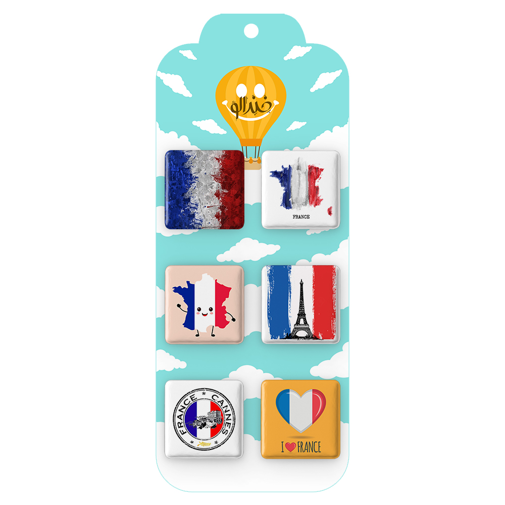 پک ۶ عددی مگنت مربعی خندالو طرح فرانسه (France) محصولی جدید، جذاب و منحصر به فرد هستند که با بالاترین سطح کیفی تولید می شوند.فرم مربعی مگنت های خندالو، آنها را بدل به محصولی خاص و کمتر دیده شده کرده است. آهنربای پشت مگنت ها، به نحوی تولید شده اند که هنگام نصب بر روی سطوح آهنی ایستایی بسیار خوبی دارند و به راحتی کنده نمی شوند. در چاپ طرح های مگنت خندالو از بهترین جوهر و کاغذ موجود استفاده می کنیم تا جلا و جذابیت طرح، کاملا حفظ شود.