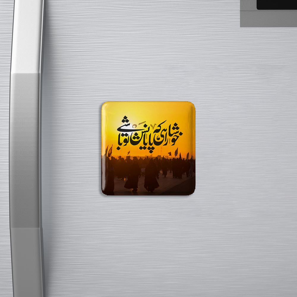 مگنت های مربعی محرم خوشا راهی که پایانش تو باشی خندالو محصولی جدید، جذاب و منحصر به فرد هستند که با بالاترین سطح کیفی تولید می شوند.فرم مربعی مگنت های خندالو، آنها را بدل به محصولی خاص و کمتر دیده شده کرده است. آهنربای پشت مگنت ها، به نحوی تولید شده اند که هنگام نصب بر روی سطوح آهنی ایستایی بسیار خوبی دارند و به راحتی کنده نمی شوند. چاپ مگنت مربعی محرم خوشا راهی که پایانش تو باشی نیز با دستگاه های استاندارد و با بهترین سطح کیفی صورت گرفته و طرح با شفافیتی مثال زدنی و با روکشی شفاف و بدون خط و خش بر روی مگنت نقش بسته است. همچنین بسته بندی جذاب و مینیمال مگنت ها، آنها را بدل به محصولی مناسب هدیه کرده است. مگنت ها قابل نصب بر روی یخچال، کمد های آهنی، چارچوب درها، وایت بردها و هر سطح آهنی دیگری هستند که علاوه بر جذابیت و زیبایی خود آنها، از مگنت ها به عنوان وسیله ای برای قرار دادن عکس روی یخچال و کاغذ روی وایت برد و موارد مصرف دیگر میتوان بهره برد. جنس آهنربای پشت مگنت محرم خوشا راهی که پایانش تو باشی به گونه ای است که کمترین خط و خشی را بر روی یخچال و سایر سطوح باقی نمیگذارد و به هیچ عنوان بدنه یخچال را زخمی یا خراب نمیکند.