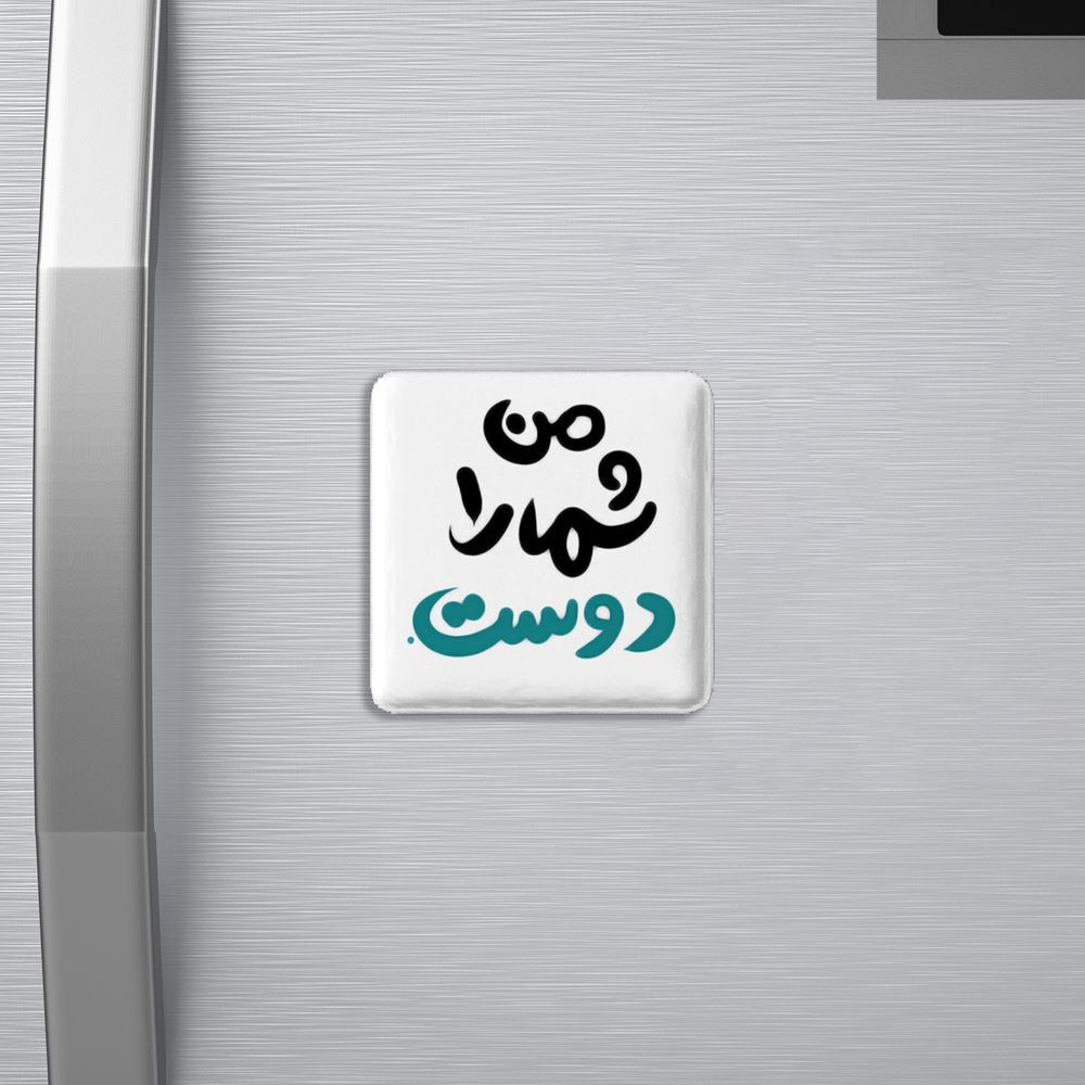مگنت های مربعی من شما را دوست خندالو محصولی جدید، جذاب و منحصر به فرد هستند که با بالاترین سطح کیفی تولید می شوند.فرم مربعی مگنت های خندالو، آنها را بدل به محصولی خاص و کمتر دیده شده کرده است. آهنربای پشت مگنت ها، به نحوی تولید شده اند که هنگام نصب بر روی سطوح آهنی ایستایی بسیار خوبی دارند و به راحتی کنده نمی شوند. چاپ مگنت مربعی من شما را دوست نیز با دستگاه های استاندارد و با بهترین سطح کیفی صورت گرفته و طرح با شفافیتی مثال زدنی و با روکشی شفاف و بدون خط و خش بر روی مگنت نقش بسته است. همچنین بسته بندی جذاب و مینیمال مگنت ها، آنها را بدل به محصولی مناسب هدیه کرده است. مگنت ها قابل نصب بر روی یخچال، کمد های آهنی، چارچوب درها، وایت بردها و هر سطح آهنی دیگری هستند که علاوه بر جذابیت و زیبایی خود آنها، از مگنت ها به عنوان وسیله ای برای قرار دادن عکس روی یخچال و کاغذ روی وایت برد و موارد مصرف دیگر میتوان بهره برد. جنس آهنربای پشت مگنت من شما را دوست به گونه ای است که کمترین خط و خشی را بر روی یخچال و سایر سطوح باقی نمیگذارد و به هیچ عنوان بدنه یخچال را زخمی یا خراب نمیکند.