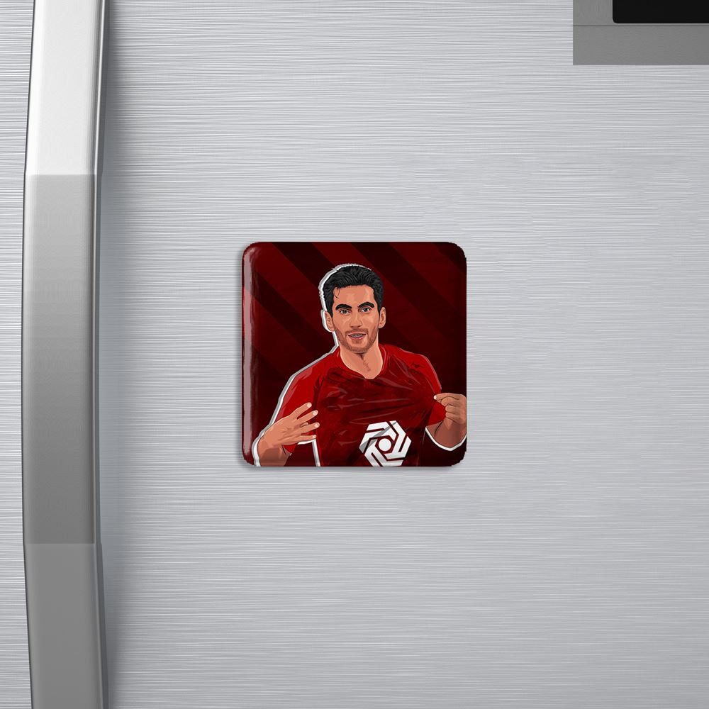 مگنت های مربعی مهدی شیری پرسپولیس خندالو محصولی جدید، جذاب و منحصر به فرد هستند که با بالاترین سطح کیفی تولید می شوند.فرم مربعی مگنت های خندالو، آنها را بدل به محصولی خاص و کمتر دیده شده کرده است. آهنربای پشت مگنت ها، به نحوی تولید شده اند که هنگام نصب بر روی سطوح آهنی ایستایی بسیار خوبی دارند و به راحتی کنده نمی شوند. چاپ مگنت مربعی مهدی شیری پرسپولیس نیز با دستگاه های استاندارد و با بهترین سطح کیفی صورت گرفته و طرح با شفافیتی مثال زدنی و با روکشی شفاف و بدون خط و خش بر روی مگنت نقش بسته است. همچنین بسته بندی جذاب و مینیمال مگنت ها، آنها را بدل به محصولی مناسب هدیه کرده است. مگنت ها قابل نصب بر روی یخچال، کمد های آهنی، چارچوب درها، وایت بردها و هر سطح آهنی دیگری هستند که علاوه بر جذابیت و زیبایی خود آنها، از مگنت ها به عنوان وسیله ای برای قرار دادن عکس روی یخچال و کاغذ روی وایت برد و موارد مصرف دیگر میتوان بهره برد. جنس آهنربای پشت مگنت مهدی شیری پرسپولیس به گونه ای است که کمترین خط و خشی را بر روی یخچال و سایر سطوح باقی نمیگذارد و به هیچ عنوان بدنه یخچال را زخمی یا خراب نمیکند.