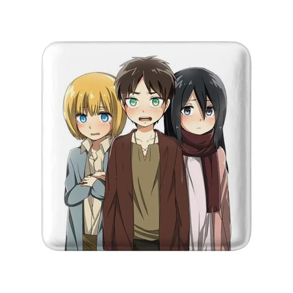مگنت های مربعی میکاسا و ارن و ارمین انیمه اتک آن تایتان Attack on Titan خندالو محصولی جدید، جذاب و منحصر به فرد هستند که با بالاترین سطح کیفی تولید می شوند.فرم مربعی مگنت های خندالو، آنها را بدل به محصولی خاص و کمتر دیده شده کرده است. آهنربای پشت مگنت ها، به نحوی تولید شده اند که هنگام نصب بر روی سطوح آهنی ایستایی بسیار خوبی دارند و به راحتی کنده نمی شوند. چاپ مگنت مربعی میکاسا و ارن و ارمین انیمه اتک آن تایتان Attack on Titan نیز با دستگاه های استاندارد و با بهترین سطح کیفی صورت گرفته و طرح با شفافیتی مثال زدنی و با روکشی شفاف و بدون خط و خش بر روی مگنت نقش بسته است. همچنین بسته بندی جذاب و مینیمال مگنت ها، آنها را بدل به محصولی مناسب هدیه کرده است. مگنت ها قابل نصب بر روی یخچال، کمد های آهنی، چارچوب درها، وایت بردها و هر سطح آهنی دیگری هستند که علاوه بر جذابیت و زیبایی خود آنها، از مگنت ها به عنوان وسیله ای برای قرار دادن عکس روی یخچال و کاغذ روی وایت برد و موارد مصرف دیگر میتوان بهره برد. جنس آهنربای پشت مگنت میکاسا و ارن و ارمین انیمه اتک آن تایتان Attack on Titan به گونه ای است که کمترین خط و خشی را بر روی یخچال و سایر سطوح باقی نمیگذارد و به هیچ عنوان بدنه یخچال را زخمی یا خراب نمیکند.