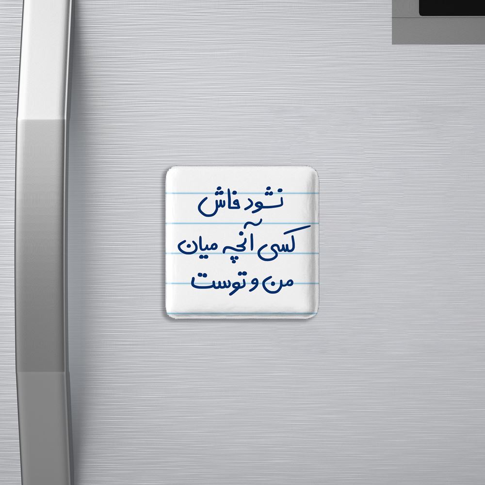 مگنت های مربعی نشود فاش کسی آنچه میان من و توست خندالو محصولی جدید، جذاب و منحصر به فرد هستند که با بالاترین سطح کیفی تولید می شوند.فرم مربعی مگنت های خندالو، آنها را بدل به محصولی خاص و کمتر دیده شده کرده است. آهنربای پشت مگنت ها، به نحوی تولید شده اند که هنگام نصب بر روی سطوح آهنی ایستایی بسیار خوبی دارند و به راحتی کنده نمی شوند. چاپ مگنت مربعی نشود فاش کسی آنچه میان من و توست نیز با دستگاه های استاندارد و با بهترین سطح کیفی صورت گرفته و طرح با شفافیتی مثال زدنی و با روکشی شفاف و بدون خط و خش بر روی مگنت نقش بسته است. همچنین بسته بندی جذاب و مینیمال مگنت ها، آنها را بدل به محصولی مناسب هدیه کرده است. مگنت ها قابل نصب بر روی یخچال، کمد های آهنی، چارچوب درها، وایت بردها و هر سطح آهنی دیگری هستند که علاوه بر جذابیت و زیبایی خود آنها، از مگنت ها به عنوان وسیله ای برای قرار دادن عکس روی یخچال و کاغذ روی وایت برد و موارد مصرف دیگر میتوان بهره برد. جنس آهنربای پشت مگنت نشود فاش کسی آنچه میان من و توست به گونه ای است که کمترین خط و خشی را بر روی یخچال و سایر سطوح باقی نمیگذارد و به هیچ عنوان بدنه یخچال را زخمی یا خراب نمیکند.