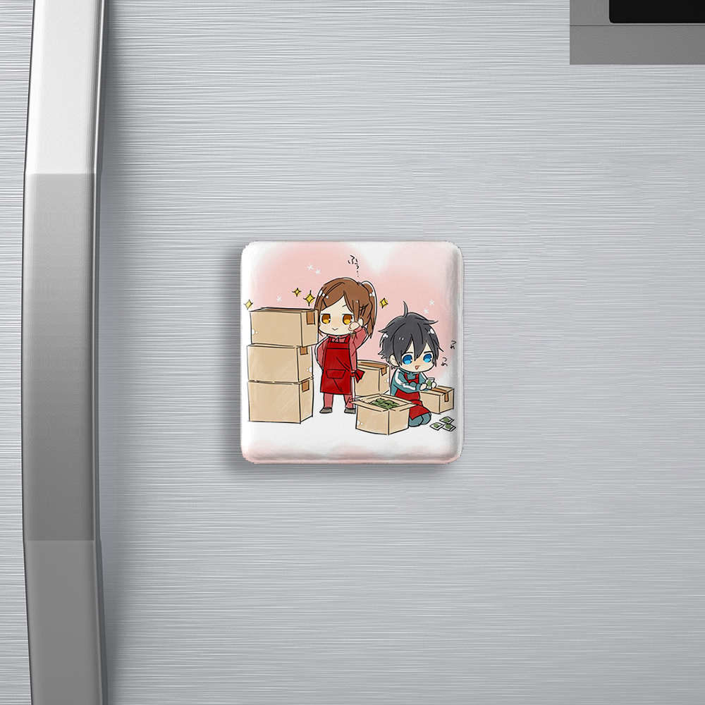 مگنت های مربعی هوری و میامورا انیمه هوریمیا خندالو محصولی جدید، جذاب و منحصر به فرد هستند که با بالاترین سطح کیفی تولید می شوند.فرم مربعی مگنت های خندالو، آنها را بدل به محصولی خاص و کمتر دیده شده کرده است. آهنربای پشت مگنت ها، به نحوی تولید شده اند که هنگام نصب بر روی سطوح آهنی ایستایی بسیار خوبی دارند و به راحتی کنده نمی شوند. چاپ مگنت مربعی هوری و میامورا انیمه هوریمیا نیز با دستگاه های استاندارد و با بهترین سطح کیفی صورت گرفته و طرح با شفافیتی مثال زدنی و با روکشی شفاف و بدون خط و خش بر روی مگنت نقش بسته است. همچنین بسته بندی جذاب و مینیمال مگنت ها، آنها را بدل به محصولی مناسب هدیه کرده است. مگنت ها قابل نصب بر روی یخچال، کمد های آهنی، چارچوب درها، وایت بردها و هر سطح آهنی دیگری هستند که علاوه بر جذابیت و زیبایی خود آنها، از مگنت ها به عنوان وسیله ای برای قرار دادن عکس روی یخچال و کاغذ روی وایت برد و موارد مصرف دیگر میتوان بهره برد. جنس آهنربای پشت مگنت هوری و میامورا انیمه هوریمیا به گونه ای است که کمترین خط و خشی را بر روی یخچال و سایر سطوح باقی نمیگذارد و به هیچ عنوان بدنه یخچال را زخمی یا خراب نمیکند.