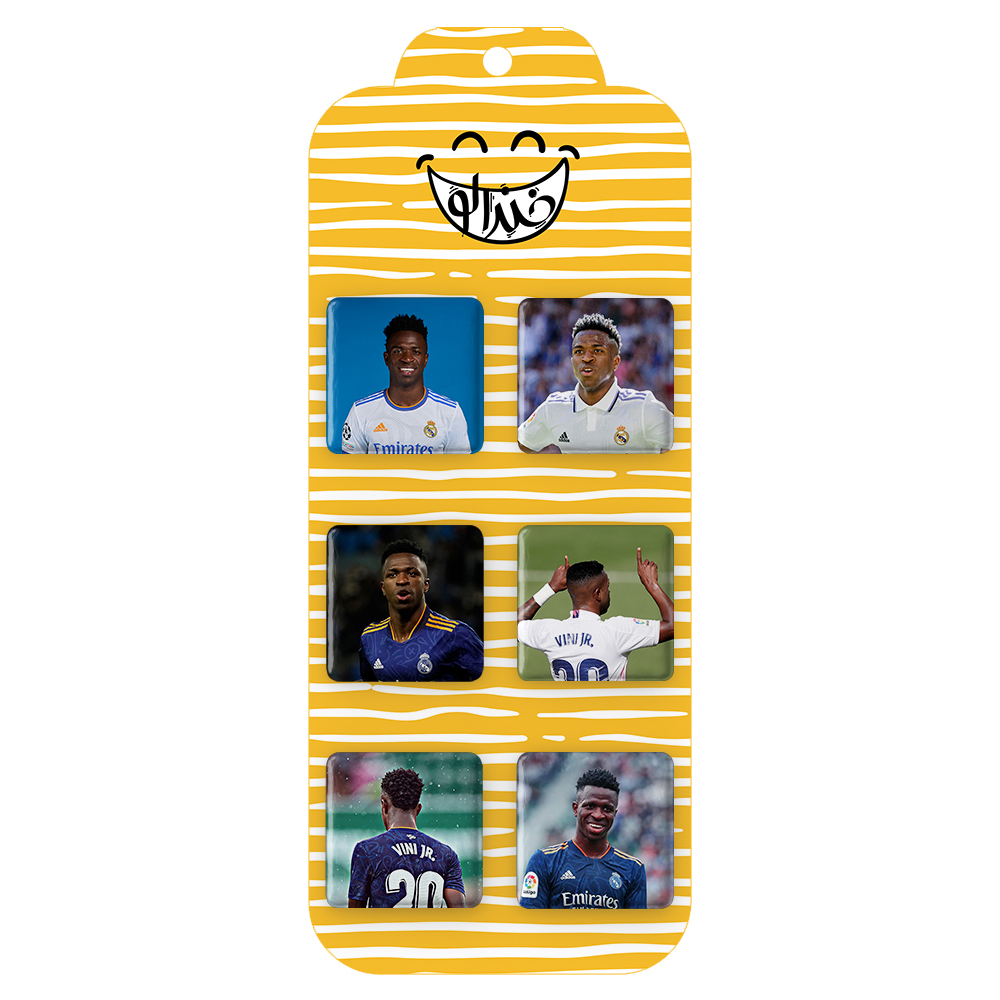 پک ۶ عددی مگنت مربعی خندالو طرح وینیسیوس جونیور (Vinicius Junior) محصولی جدید، جذاب و منحصر به فرد هستند که با بالاترین سطح کیفی تولید می شوند.فرم مربعی مگنت های خندالو، آنها را بدل به محصولی خاص و کمتر دیده شده کرده است. آهنربای پشت مگنت ها، به نحوی تولید شده اند که هنگام نصب بر روی سطوح آهنی ایستایی بسیار خوبی دارند و به راحتی کنده نمی شوند. در چاپ طرح های مگنت خندالو از بهترین جوهر و کاغذ موجود استفاده می کنیم تا جلا و جذابیت طرح، کاملا حفظ شود. زیرا بالا بودن سطح کیفیت محصولات، همواره بزرگترین دغدغه تیم تولید خندالو بوده است. این تعهد به حفظ کیفیت صرفا مربوط به چاپ روی مگنت نبوده و در مورد بدنه فلزی محصول نیز، همین مهم رعایت شده است. قطعه آهنربای تعبیه شده در پشت مگنت های خندالو محکم و مقاوم بوده و به هیچ عنوان حین باز و بسته شدن درب یخچال، جا به جا یا کنده نمی شوند و همچنین به علت جنس مگنت استفاده شده در پشت محصول، هیچگونه کثیفی و خط و خشی در محل استفاده به جای نمیگذارد مگنت های مربعی خندالو طرح وینیسیوس جونیور (Vinicius Junior) برای نصب روی یخچال، چهارچوب در، کمدهای آهنی، وایت بردها و هر سطح آهنی دیگری مناسب هستند. از مگنت برای نگه داشتن عکس و یادداشت روی یخچال و سایر سطوح نیز میتوان استفاده کرد. در مجموعه 6 عددی مگنت های خندالو طرح وینیسیوس جونیور (Vinicius Junior) ، هر 6 طرح از یک موضوع انتخاب و تولید می شوند. مجموعه 6 عددی مگنت خندالو می تواند انتخاب مناسبی برای گیفت تولد، گیفت عقد، هدیه جشن دندانی، سیسمونی و یا هر مناسبت دیگری باشد. قیمت مجموعه 6 عددی مگنت خندالو نسبت به کارت های تکی این محصول ارزان تر بوده و مقرون به صرفه تر هستند.