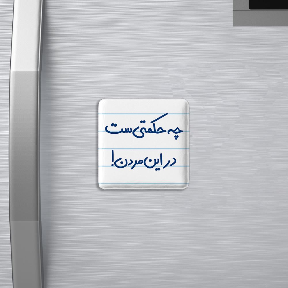 مگنت های مربعی چه حکمتی ست در این مردن ! خندالو محصولی جدید، جذاب و منحصر به فرد هستند که با بالاترین سطح کیفی تولید می شوند.فرم مربعی مگنت های خندالو، آنها را بدل به محصولی خاص و کمتر دیده شده کرده است. آهنربای پشت مگنت ها، به نحوی تولید شده اند که هنگام نصب بر روی سطوح آهنی ایستایی بسیار خوبی دارند و به راحتی کنده نمی شوند. چاپ مگنت مربعی چه حکمتی ست در این مردن ! نیز با دستگاه های استاندارد و با بهترین سطح کیفی صورت گرفته و طرح با شفافیتی مثال زدنی و با روکشی شفاف و بدون خط و خش بر روی مگنت نقش بسته است. همچنین بسته بندی جذاب و مینیمال مگنت ها، آنها را بدل به محصولی مناسب هدیه کرده است. مگنت ها قابل نصب بر روی یخچال، کمد های آهنی، چارچوب درها، وایت بردها و هر سطح آهنی دیگری هستند که علاوه بر جذابیت و زیبایی خود آنها، از مگنت ها به عنوان وسیله ای برای قرار دادن عکس روی یخچال و کاغذ روی وایت برد و موارد مصرف دیگر میتوان بهره برد. جنس آهنربای پشت مگنت چه حکمتی ست در این مردن ! به گونه ای است که کمترین خط و خشی را بر روی یخچال و سایر سطوح باقی نمیگذارد و به هیچ عنوان بدنه یخچال را زخمی یا خراب نمیکند.