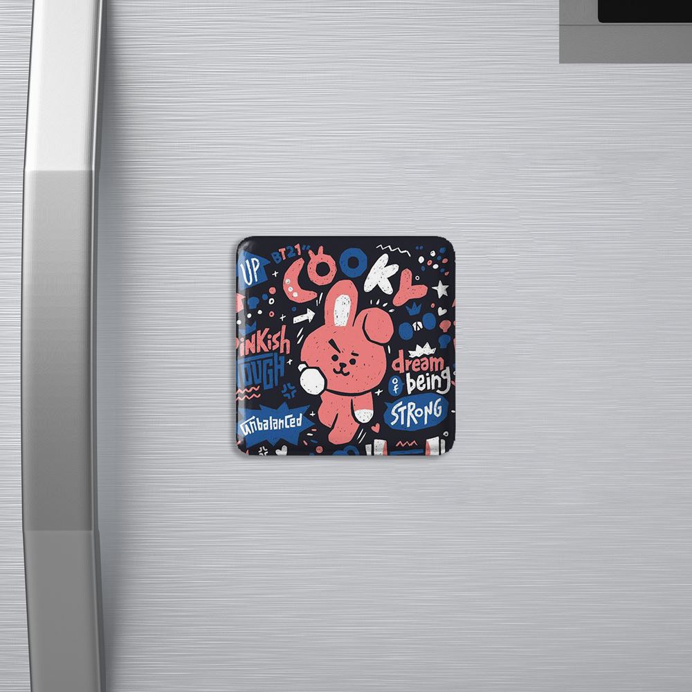 مگنت های مربعی کوکی BT21 Cooky خندالو محصولی جدید، جذاب و منحصر به فرد هستند که با بالاترین سطح کیفی تولید می شوند.فرم مربعی مگنت های خندالو، آنها را بدل به محصولی خاص و کمتر دیده شده کرده است. آهنربای پشت مگنت ها، به نحوی تولید شده اند که هنگام نصب بر روی سطوح آهنی ایستایی بسیار خوبی دارند و به راحتی کنده نمی شوند. چاپ مگنت مربعی کوکی BT21 Cooky نیز با دستگاه های استاندارد و با بهترین سطح کیفی صورت گرفته و طرح با شفافیتی مثال زدنی و با روکشی شفاف و بدون خط و خش بر روی مگنت نقش بسته است. همچنین بسته بندی جذاب و مینیمال مگنت ها، آنها را بدل به محصولی مناسب هدیه کرده است. مگنت ها قابل نصب بر روی یخچال، کمد های آهنی، چارچوب درها، وایت بردها و هر سطح آهنی دیگری هستند که علاوه بر جذابیت و زیبایی خود آنها، از مگنت ها به عنوان وسیله ای برای قرار دادن عکس روی یخچال و کاغذ روی وایت برد و موارد مصرف دیگر میتوان بهره برد. جنس آهنربای پشت مگنت کوکی BT21 Cooky به گونه ای است که کمترین خط و خشی را بر روی یخچال و سایر سطوح باقی نمیگذارد و به هیچ عنوان بدنه یخچال را زخمی یا خراب نمیکند.